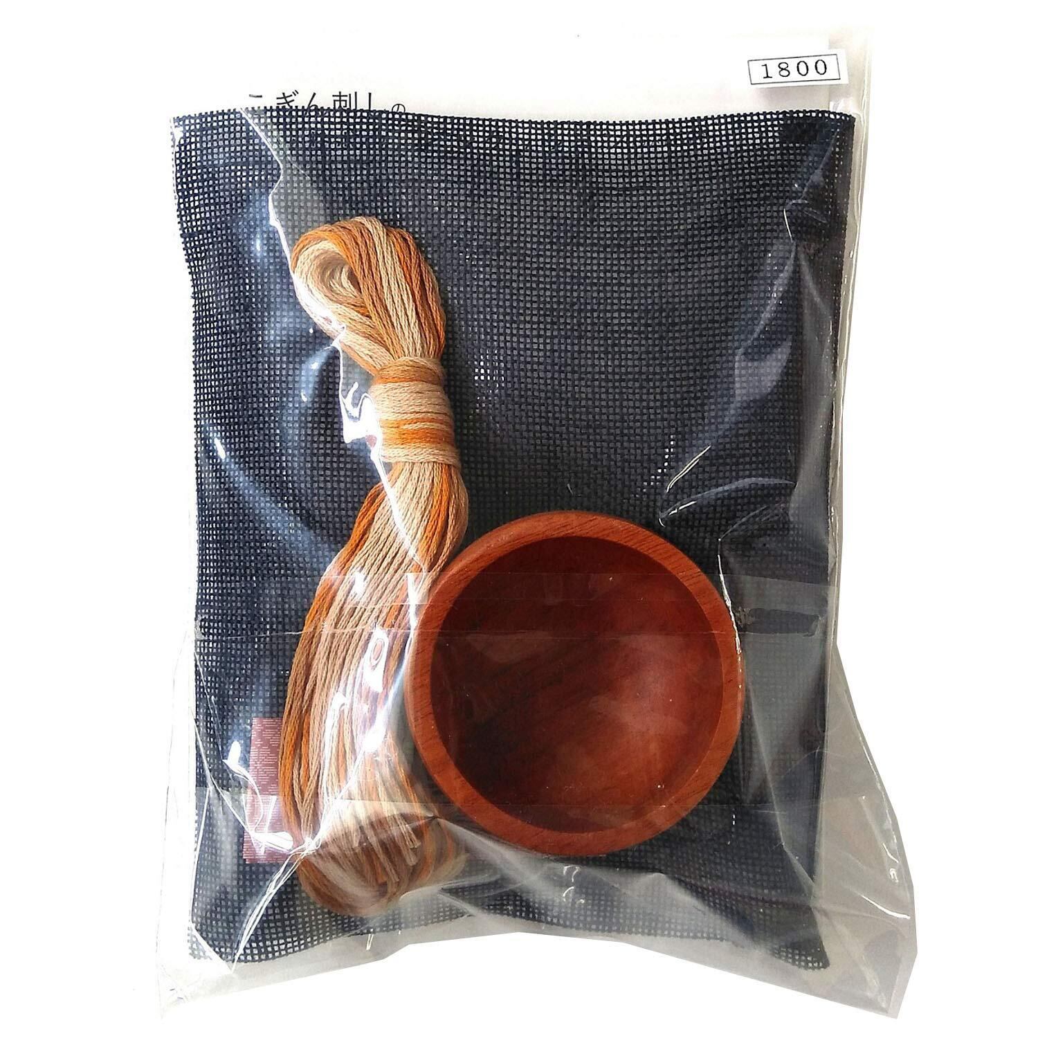 セット内容:こぎん糸段染め(綿100%)、リネンクロス(麻100%)、こぎん針、手芸わた、ウッドボウル、図案付説明書