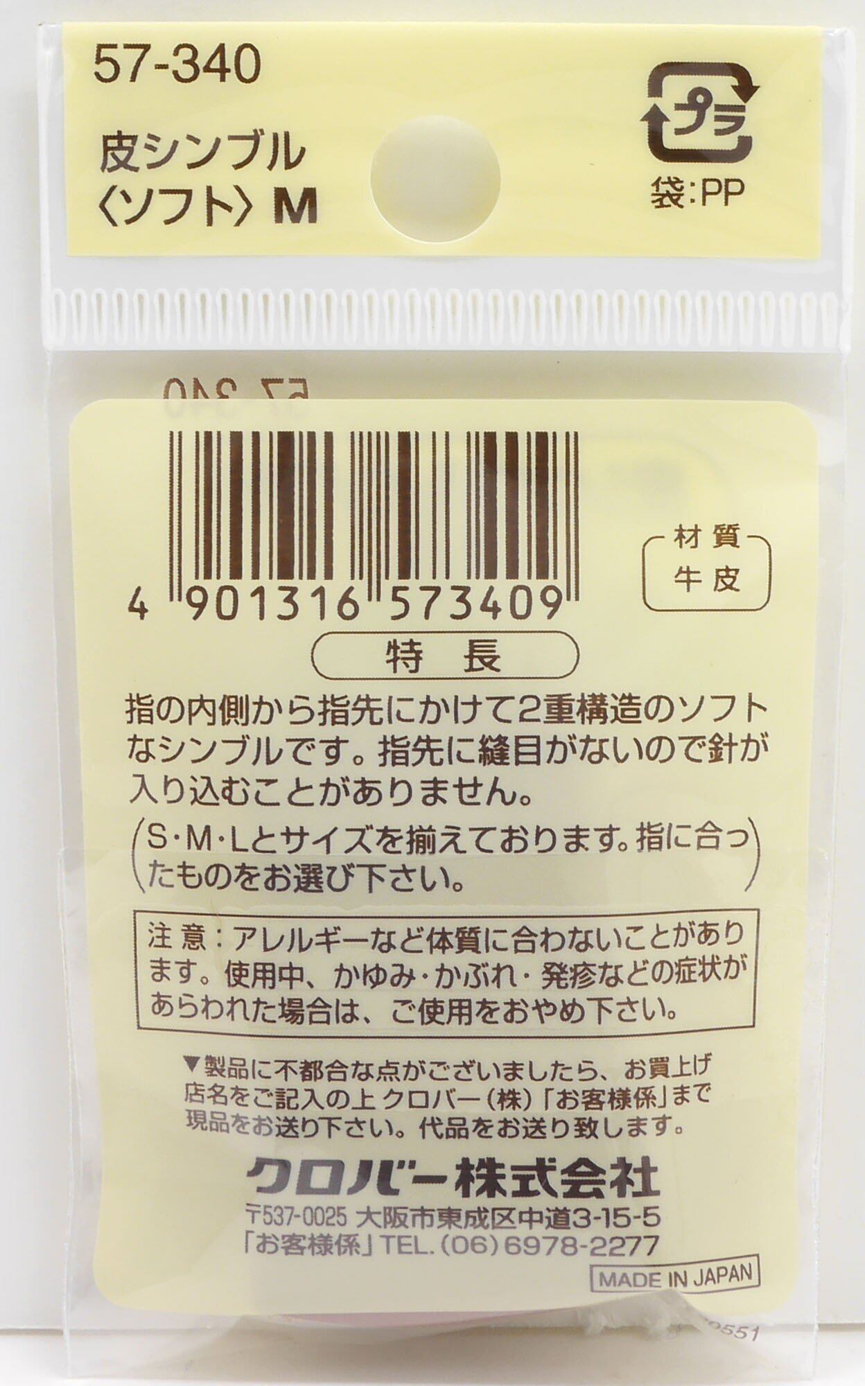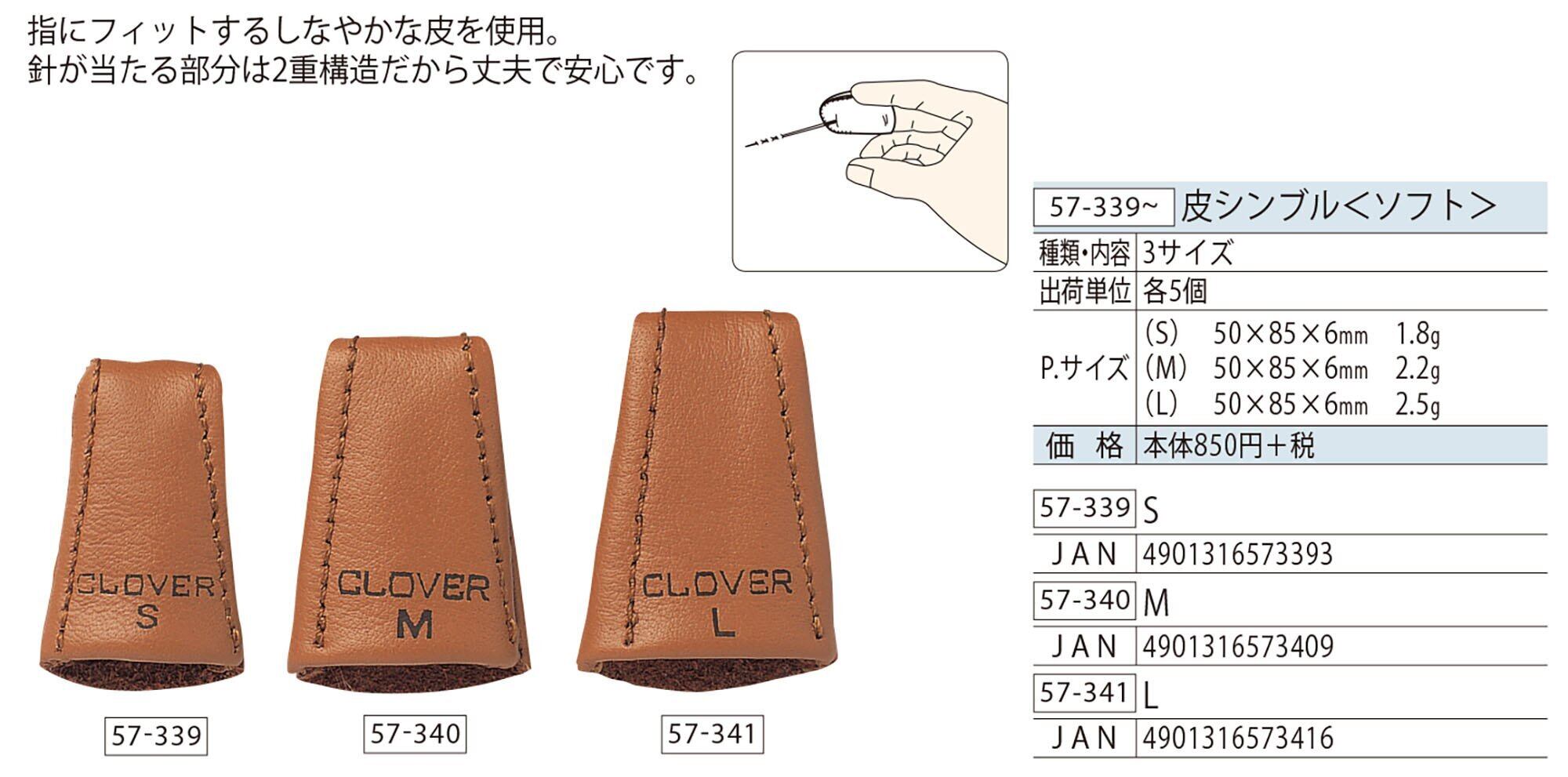 指にフィットするしなやかな皮を使用。針が当たる部分が、2重構造で丈夫。(より)