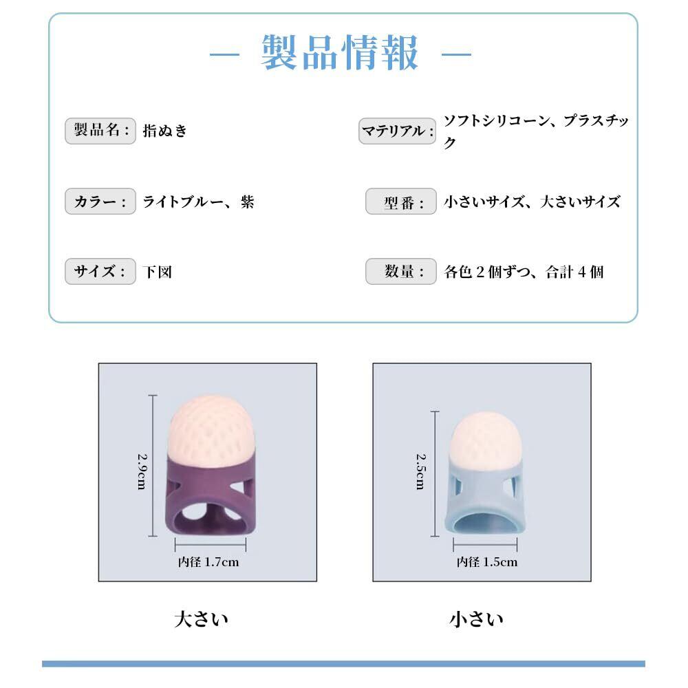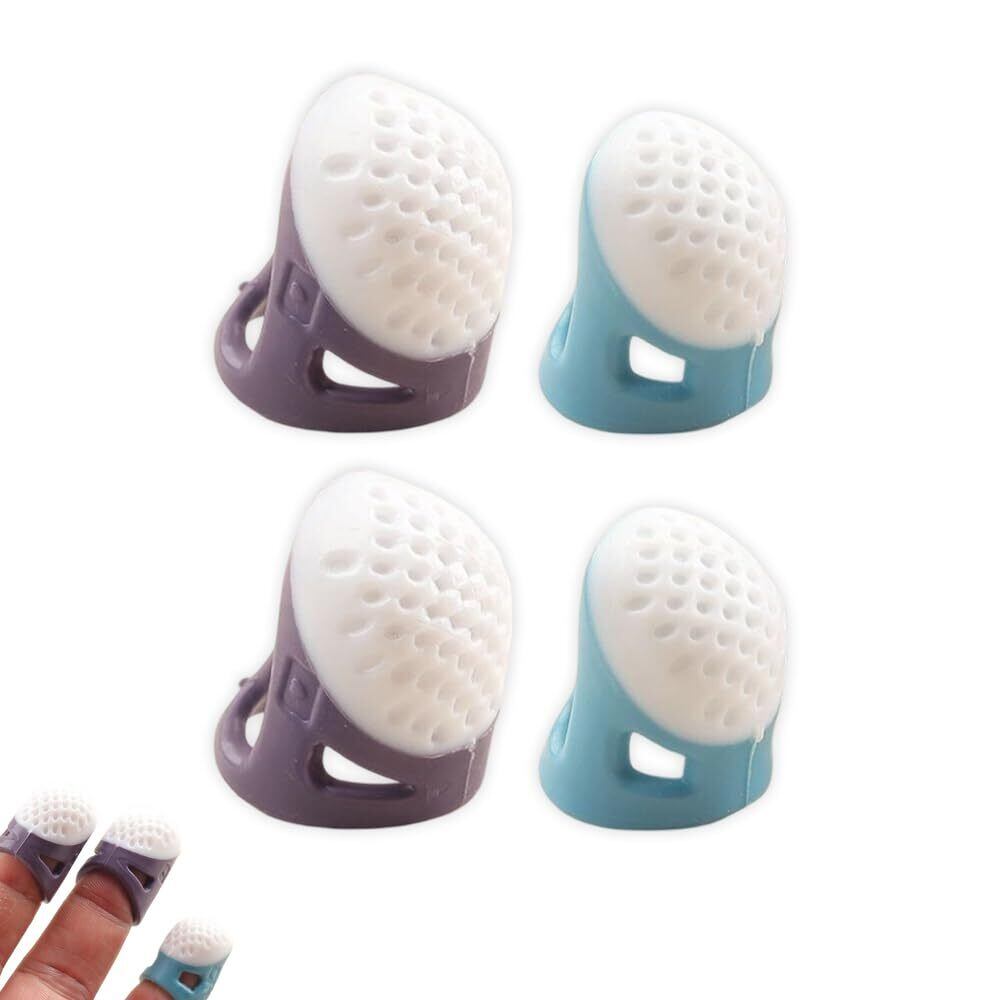 指ぬきガード 4個セット シリコン製 指プロテクター 手先保護 滑り止め 裁縫道具 手芸用品 男女兼用 紫(大きいサイズ)・淡青(小きいサイズ)各2個 手縫い 編み物 刺繍用