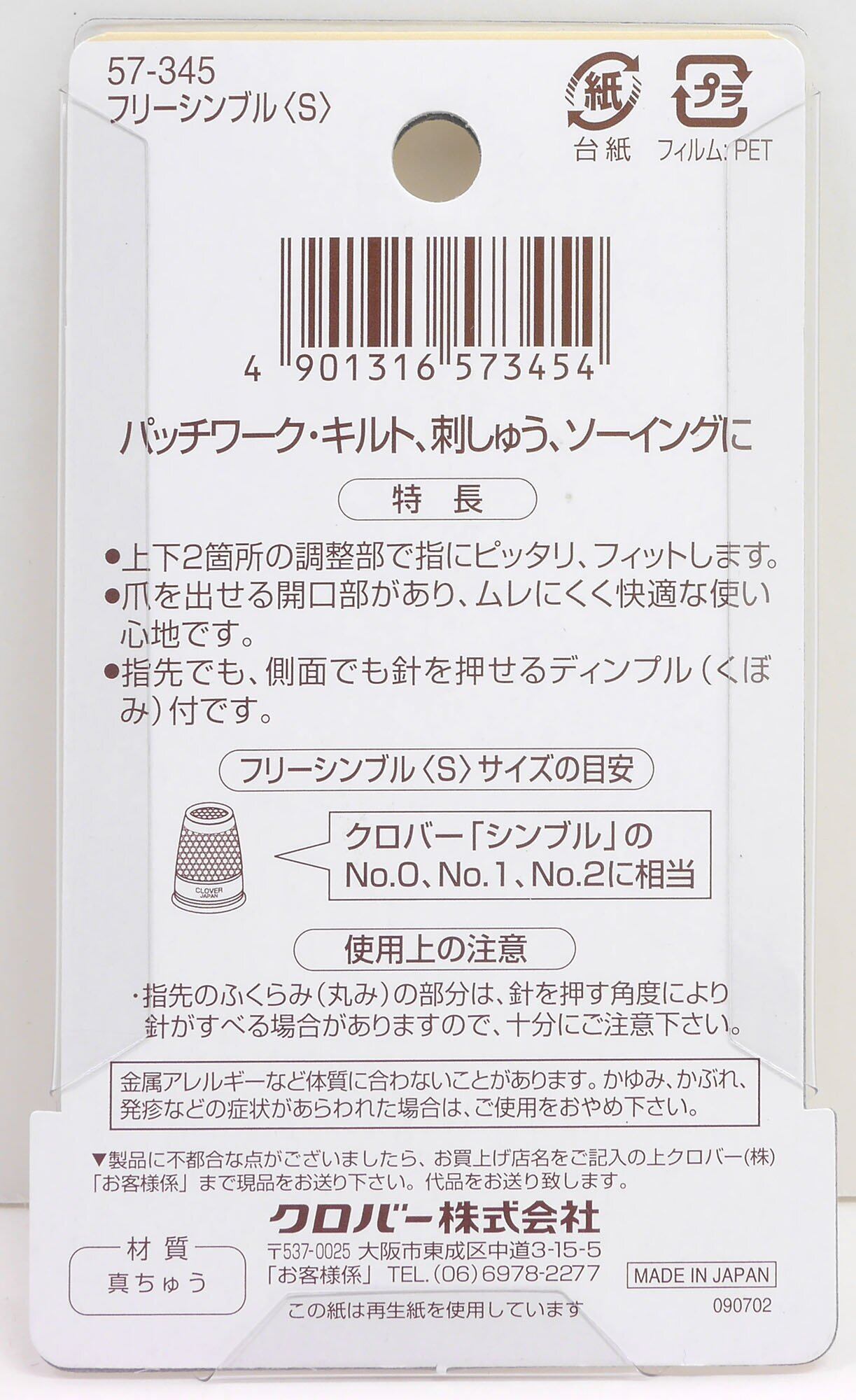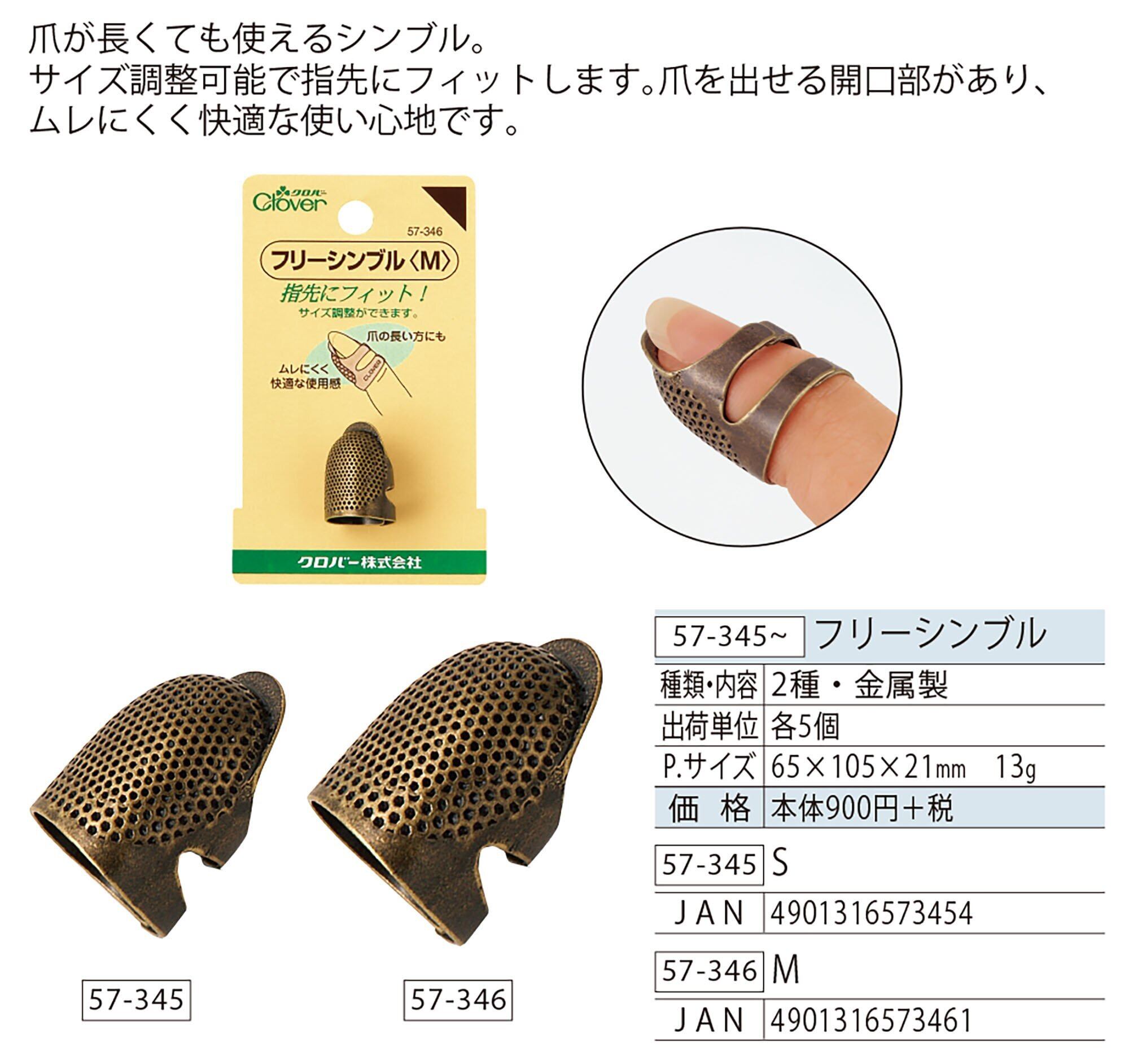 爪が長くても使えるシンブル。サイズ調整で指先にフィット。