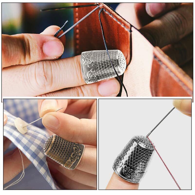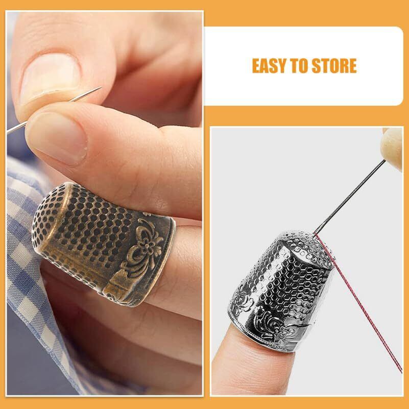 -多用途パック: この指ぬきは、手縫いのキルティングから刺繍まで、さまざまな縫製ニーズに対応し、常に適切なツールを手元に置いておくことができます。金属製の指先プロテクター付き。
