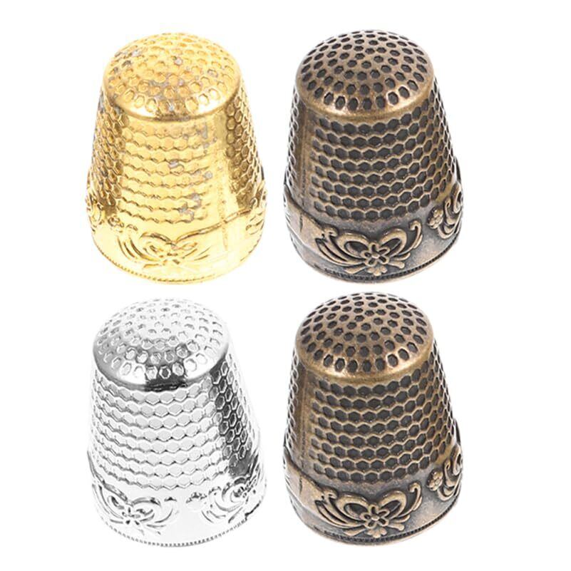 Happyyami 指ぬき シンブル 裁縫 指サック レトロ 金属製 滑り止め 4個セット 刺繍 クロスステッチ キルティング DIY 手芸用品 指先保護 針仕事 2.3×1.8cm (ブロンズ2/シルバー1/ゴールド1)