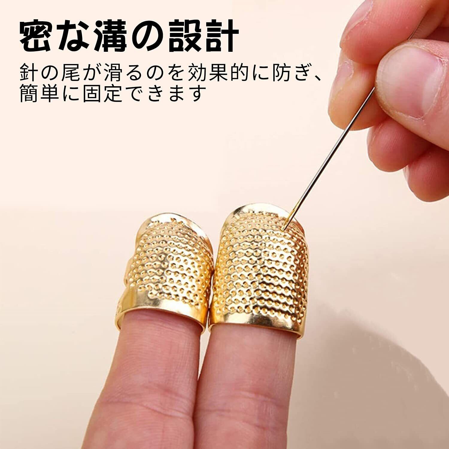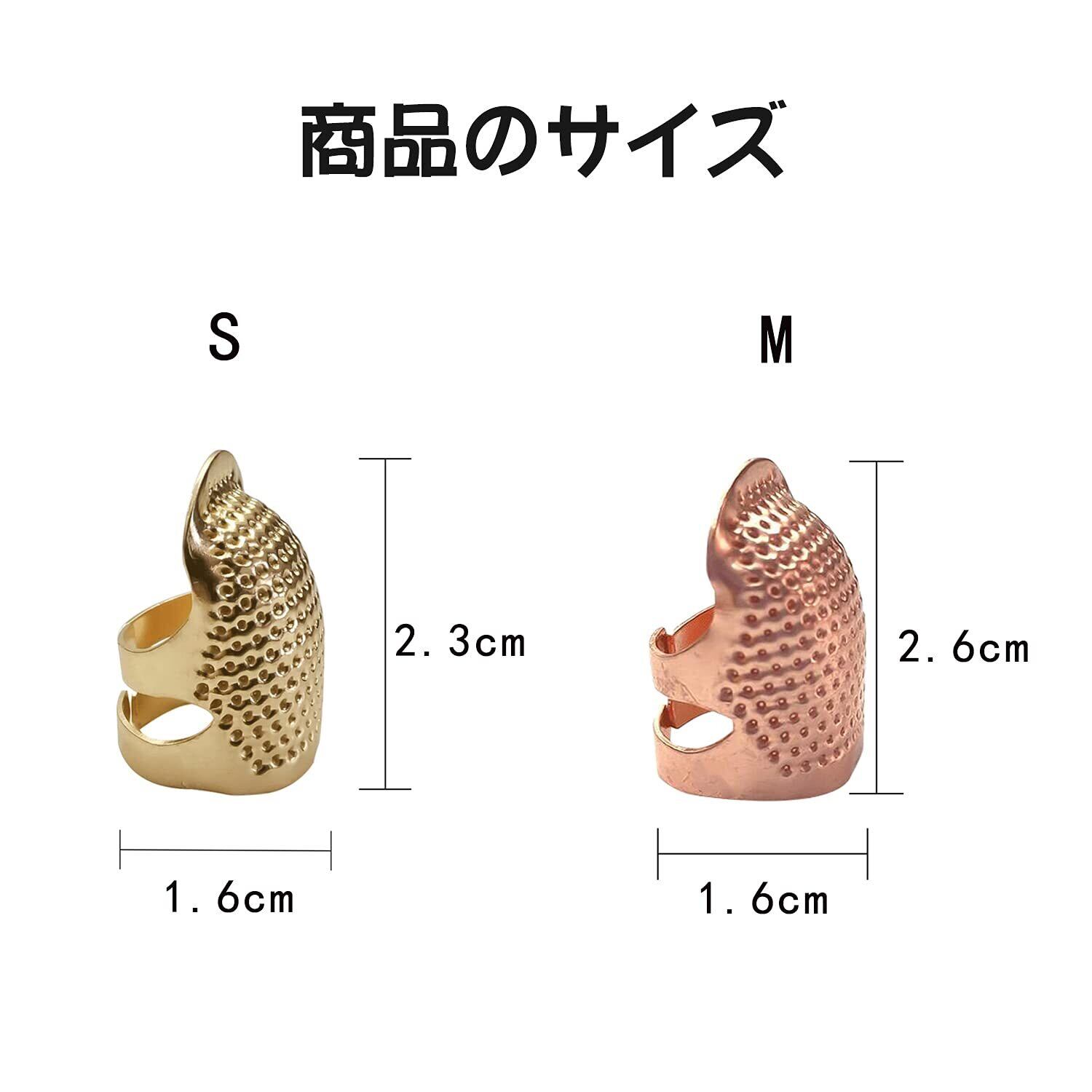 指ぬき 指プロテクター (4個入) シンブル 手芸 裁縫道具 滑り止め 裁縫用 ゆびぬき 手芸用品 フリーシンブル 縫製 裁縫 指保護 DIYツール ソーイング用 刺繍 (ゴールドSサイズ2つ、ローズゴールドMサイズ2つ) 金色
