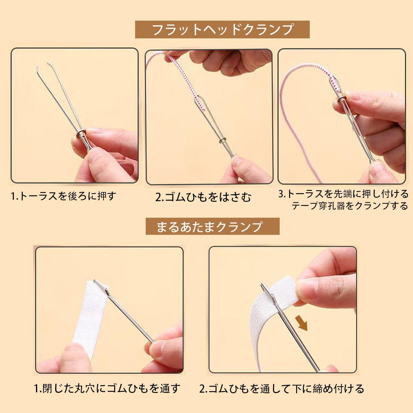 ひも通し 紐通し ズボン 2本差し ゴム通し はさみ式ひも通し&玉付ひも通し ステンレス製 ゴムひも通し 手作り 手芸 ハンドメイド DIY 裁縫道具 ひも/ゴムをしっかり挟んでスムーズに通す