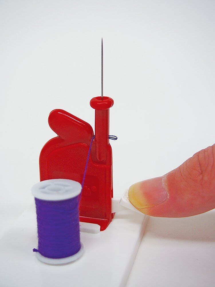 ワンプッシュで簡単に糸が通せる糸通し機です。