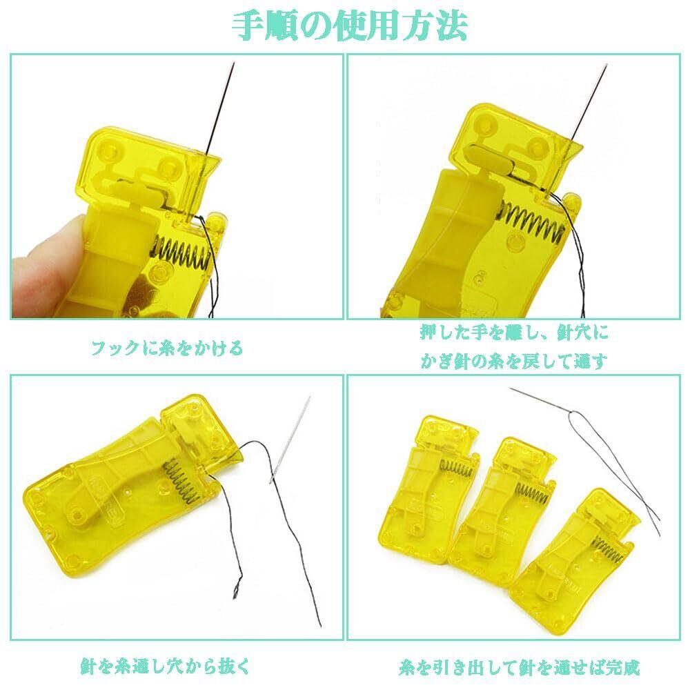 1.セット内容:糸通し器3点セット、サイズ:黄色の糸通し器:7*3.5 cm、ピンクの糸出し器:2.2*4.3 cm。