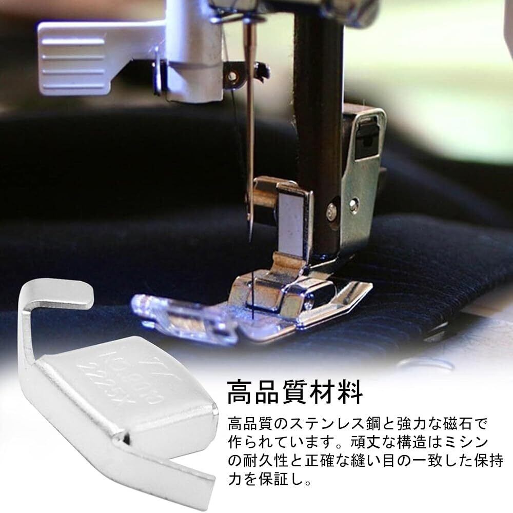 【高品質材料】高品質のステンレス鋼と強力な磁石で作られています。頑丈な構造はミシンの耐久性と正確な縫い目の一致した保持力を保証し、磁力強度は普通のミシン部品の8倍で、高速ミシンの時にゼロ変位し、針の絶対的なまっすぐさを確保した。