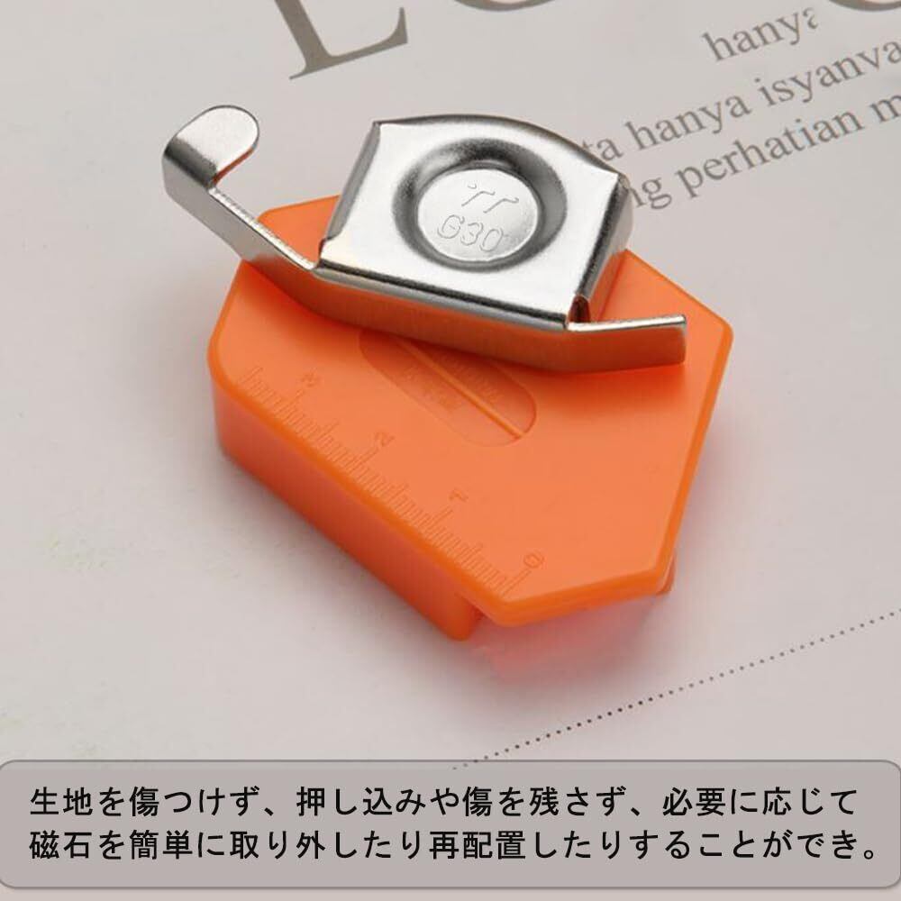 【特徴】生地を傷つけず、押し込みや傷を残さず、必要に応じて磁石を簡単に取り外したり再配置したりすることができ、シルク、シフォンなどの高価な生地も安心して使用することができる。