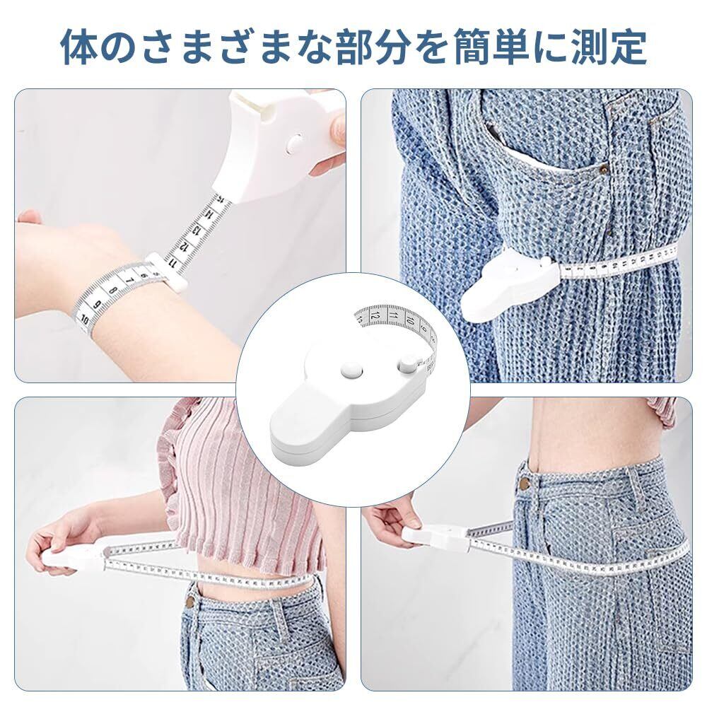 測定テープメジャー 3つの測定定規 正確な測定円周定規 自動収縮テープメジャー 多機能 ウエスト ヒップ 周囲 腕囲 脚周囲測定定規 ポータブル ホーム (ホワイト)