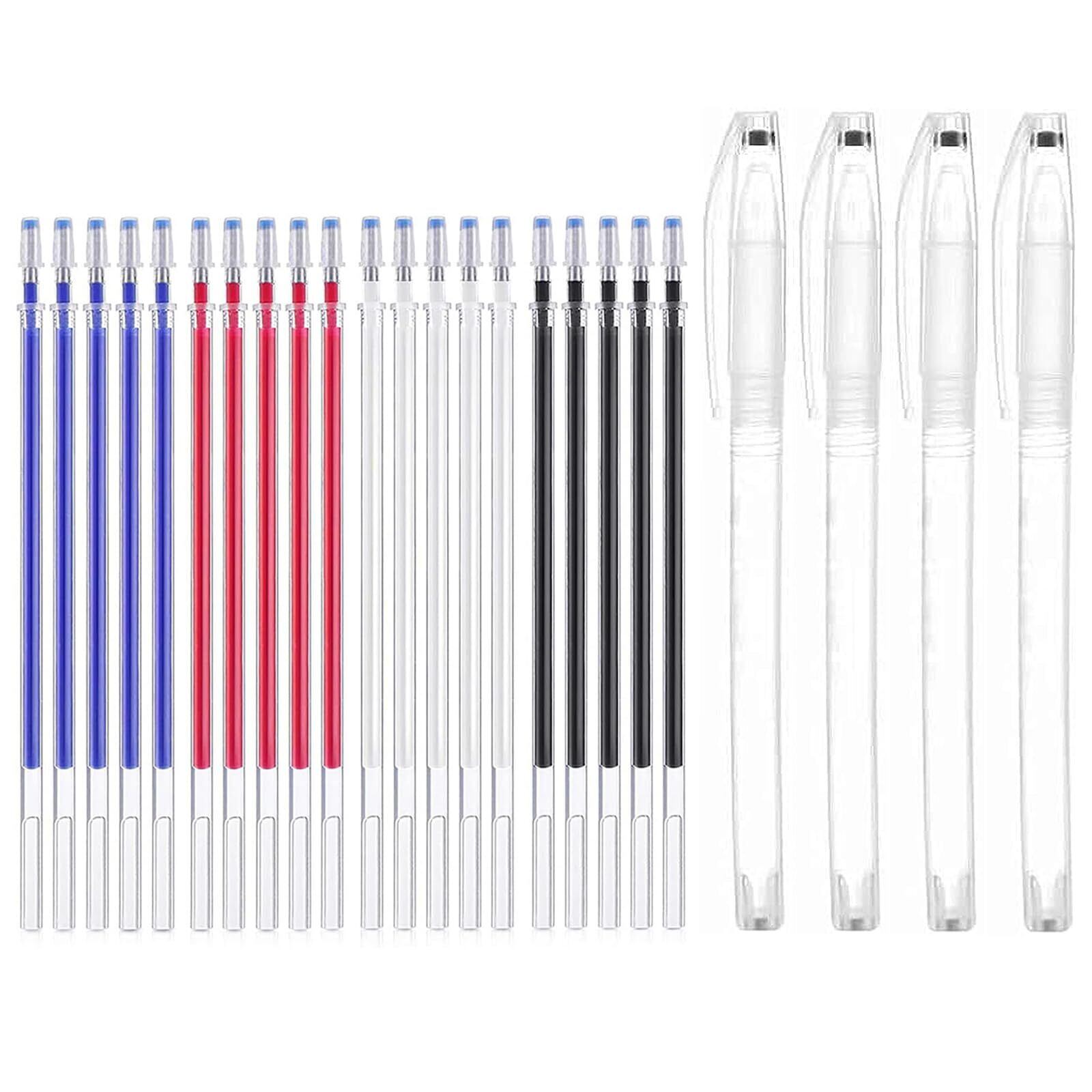 【在庫セール】チャコペン 24本セット 4色 熱で消える 刺繍 裁縫用印付けツール アイロンで消える DIY 手芸 標識 裁縫道具 印付けツール (20枚入り消えるペン+ 替芯 ペン軸4枚付き)