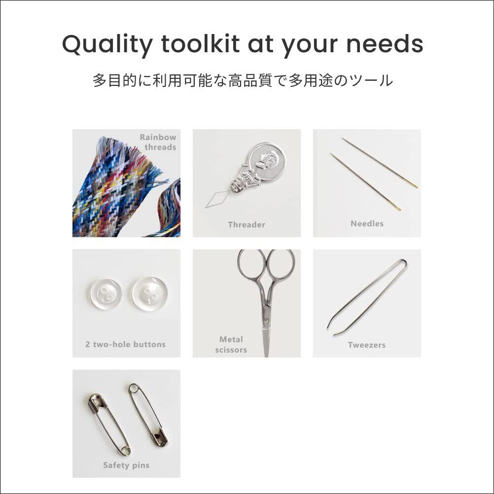【多様なニーズに対応できる上質キット】128本の編まれた30色の糸、金属製のハサミ、糸ぬき、糸通し、安全ピン、針、2つの2穴ボタンが含まれています。