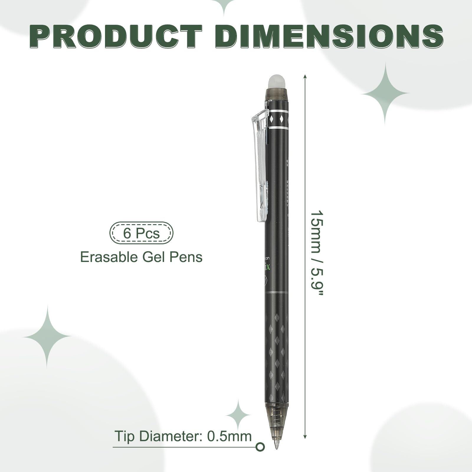 仕様: 素材: プラスチック; インク色: 黒; ペン長さ: 15 cm/5.9インチ; ペン先径: 0.5mm; 内容量: 消えるゲルペン×6本