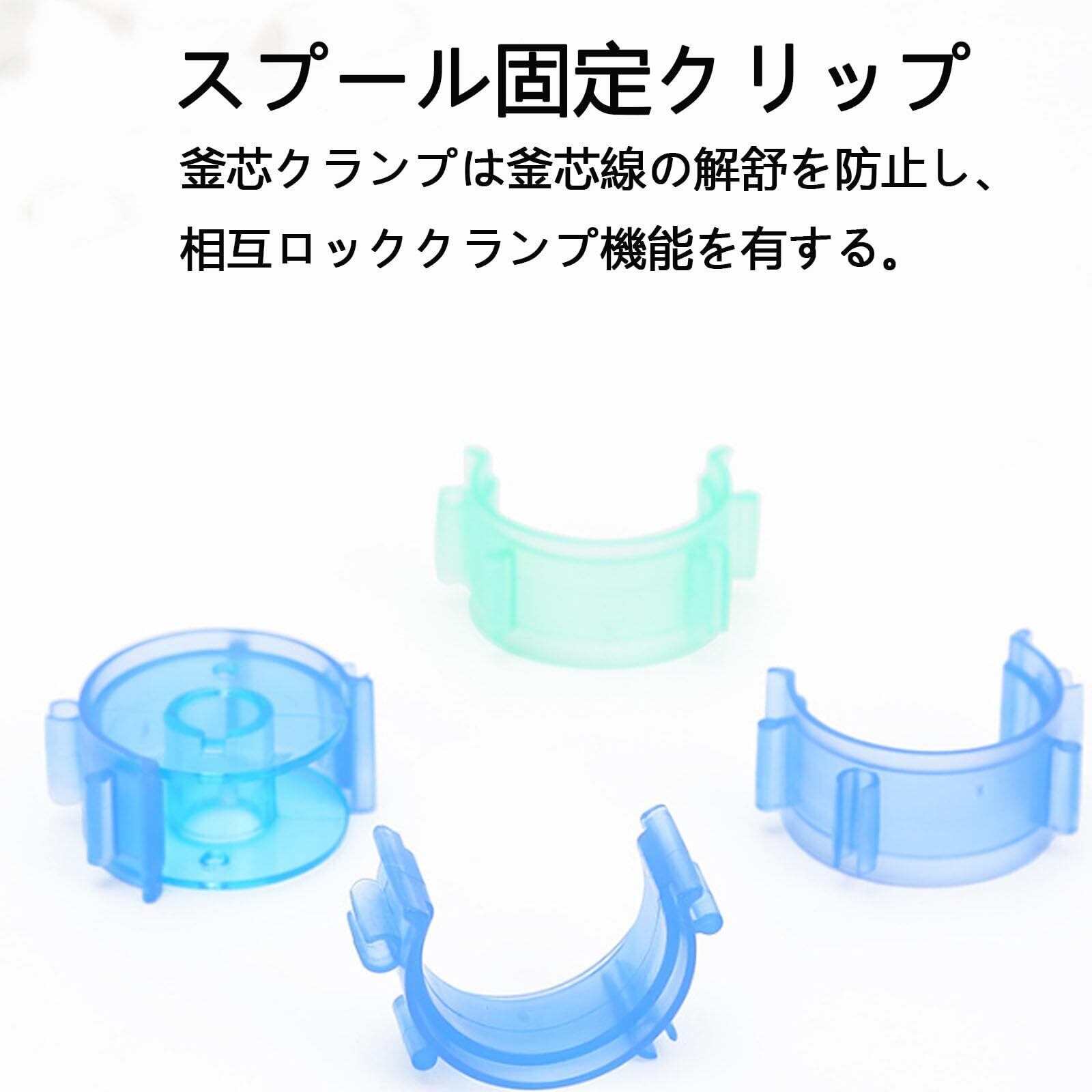 【使用法 】指でボビンクリップを開き、糸の尾を固定するまで保持します。ボビンクランプが糸を引き締め、落としても糸が絡まりません。これらの色によって糸を区別できるため、必要な下糸を探す手間が省け、下糸を鮮やかでカラフルにすることもできます。