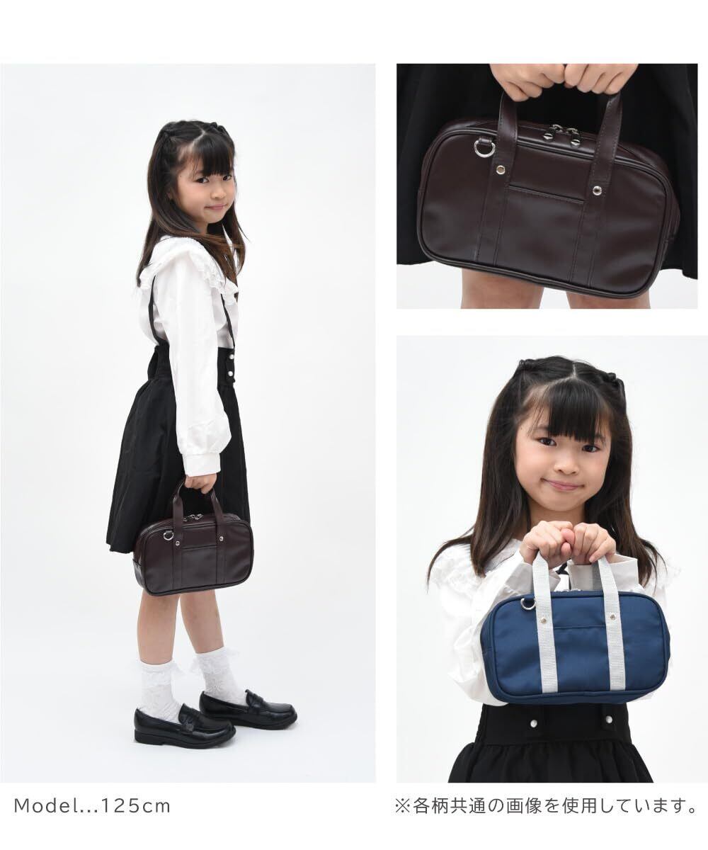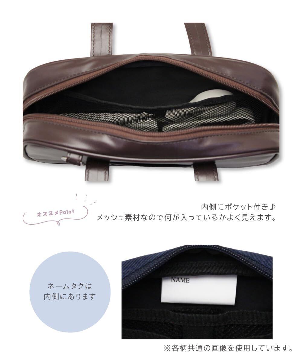 スクールバッグ風のデザインがかわいい裁縫セットです。ネイビーは布地、チョコレートブラウンは合皮です。バッグ外寸:約 23×13×5.5cm(ハンドル含まず)