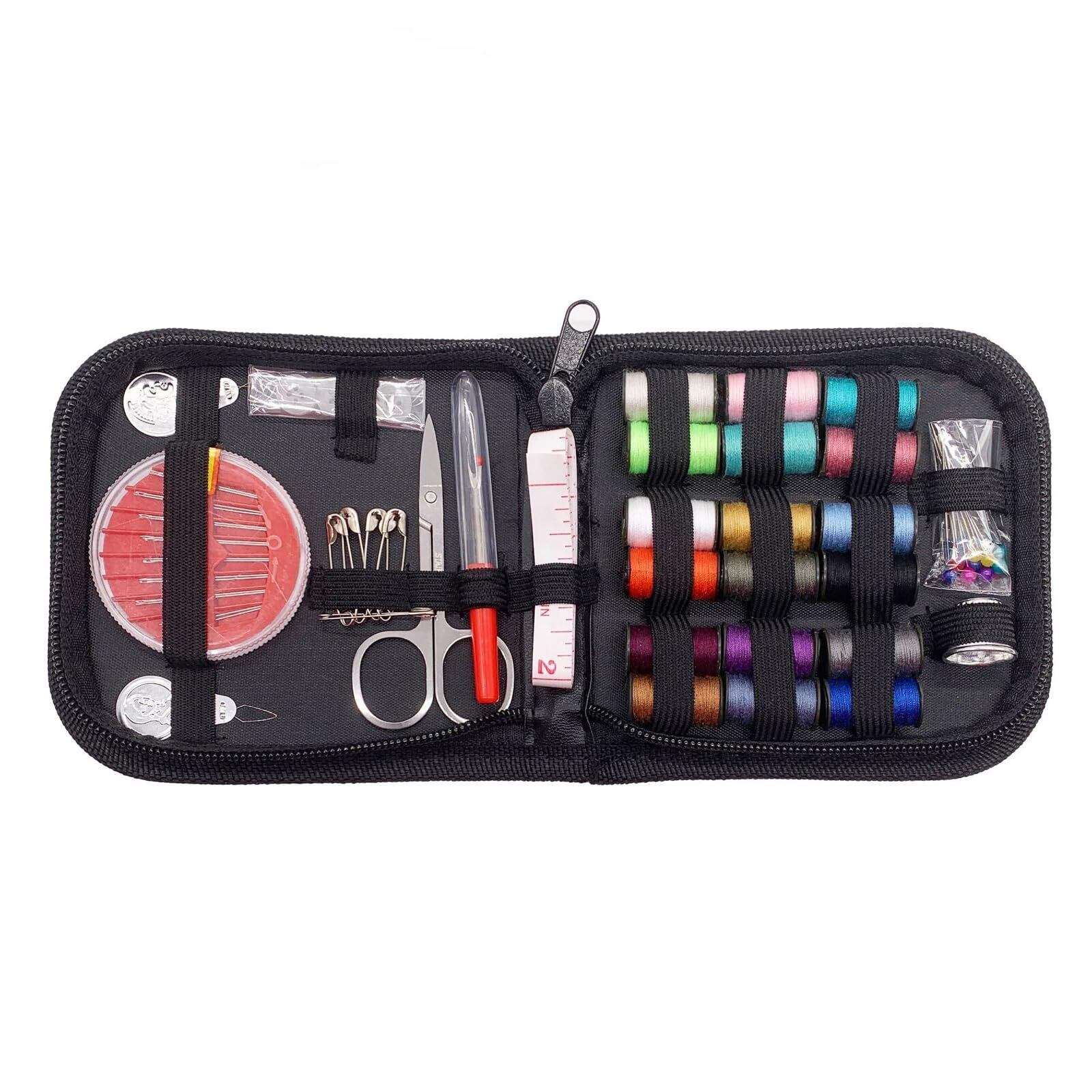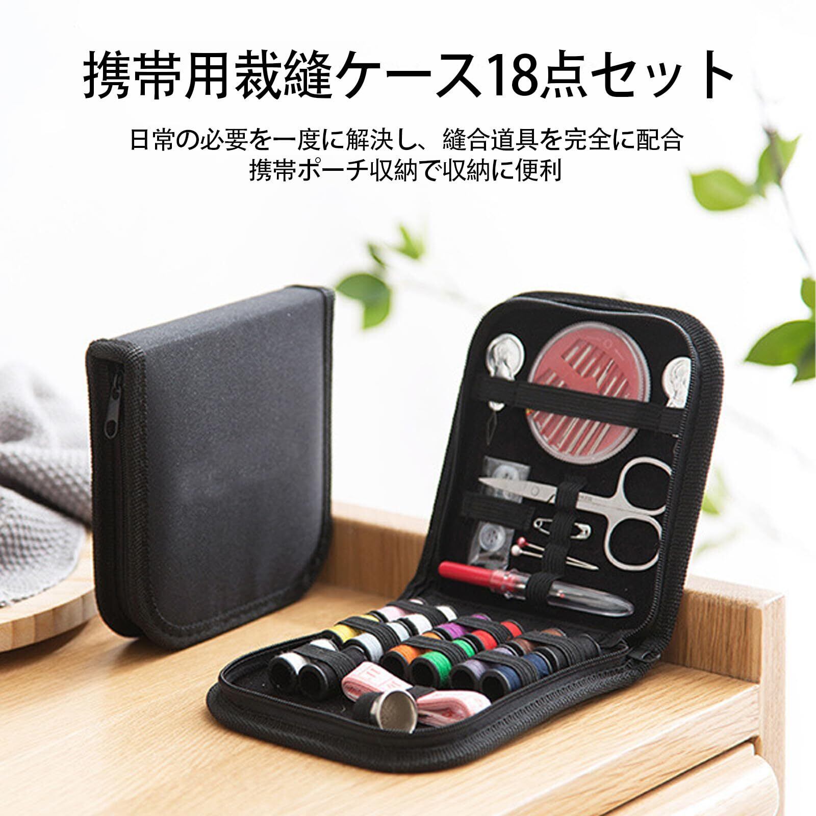 LUYING 裁縫セット ソーイングセット 裁縫道具 18色縫い糸あり 携帯式 針と糸キット 刺繍/手芸/裁縫 家庭用ソーイングセット コンパクト 省スペース 保管しやすい ブラック収納バッグ付き