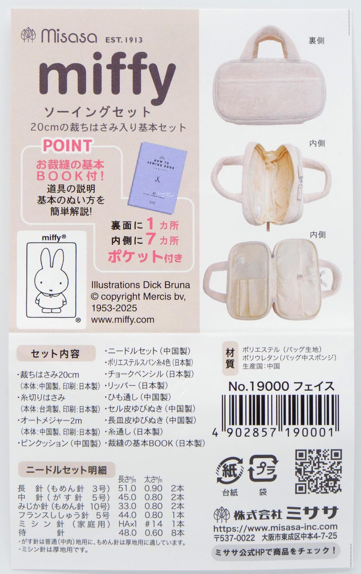 ミササ (misasa) ソーイング セット miffy ミッフィー Wファスナーバッグ No. 19000
