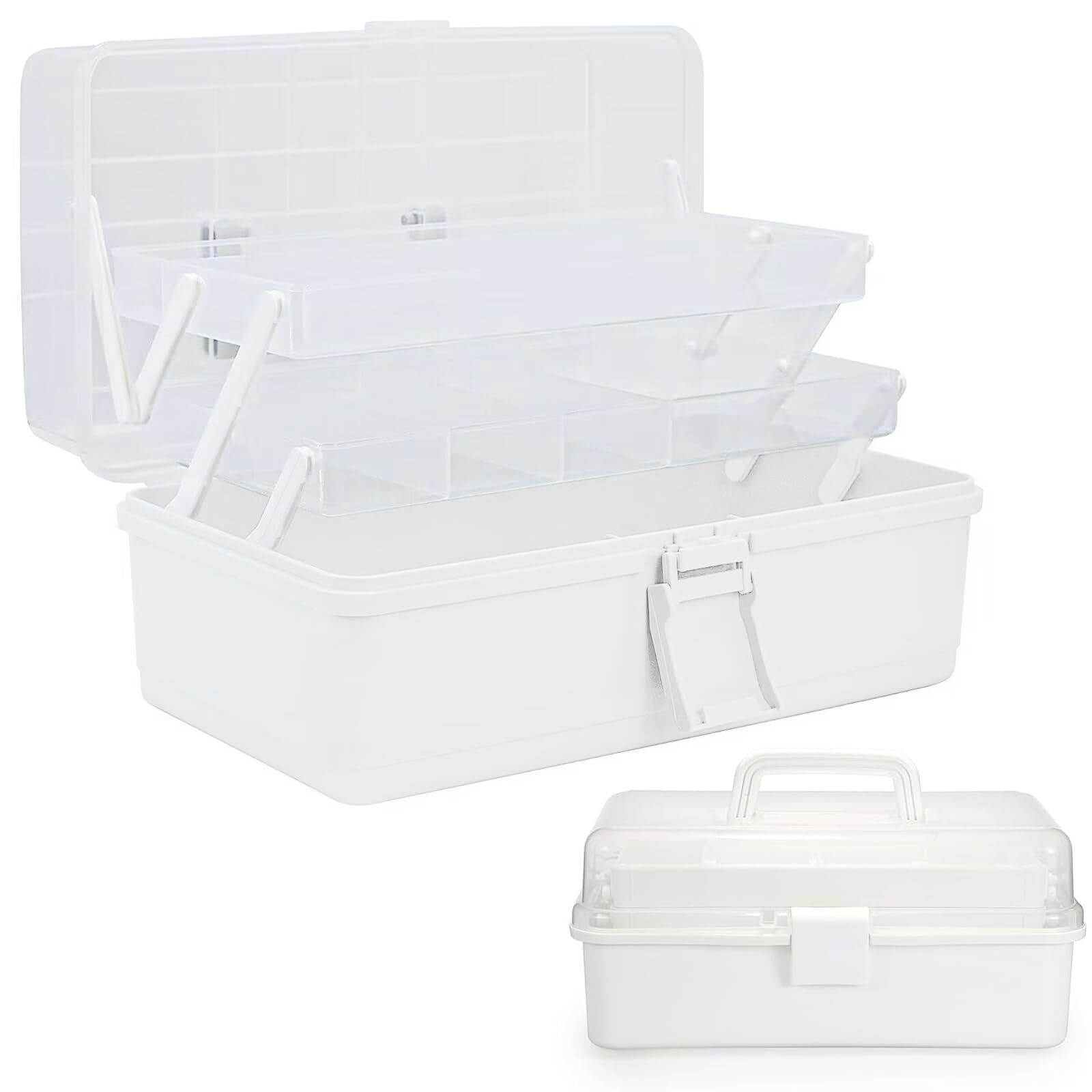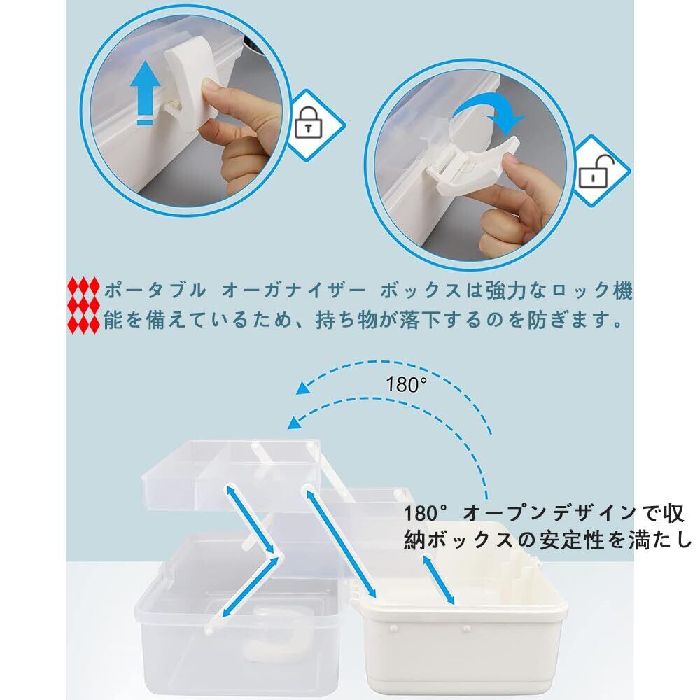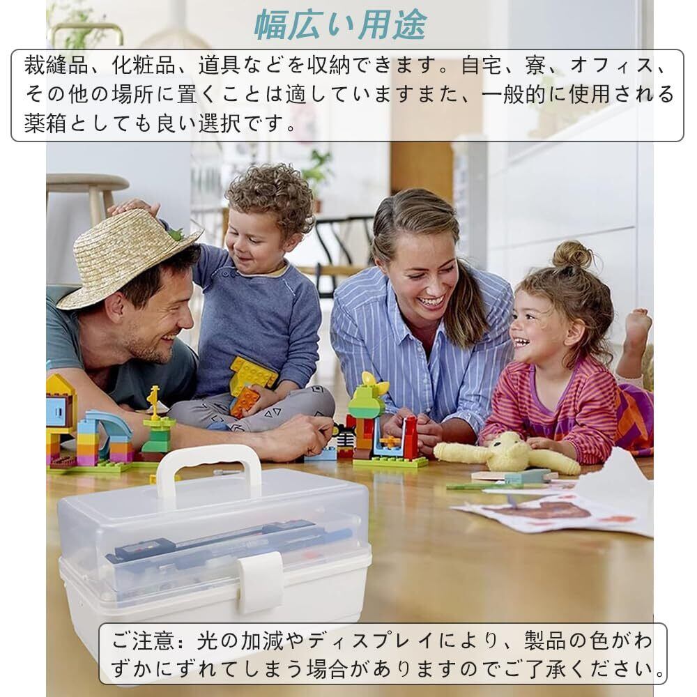 DFsucces ツールボックス 3段式大容量収納ボックス 半透明 180度オープン 多機能 小物入れ 裁縫道具 取っ手付き 雑貨収納ボックス 家用 車用 (ホワイト)