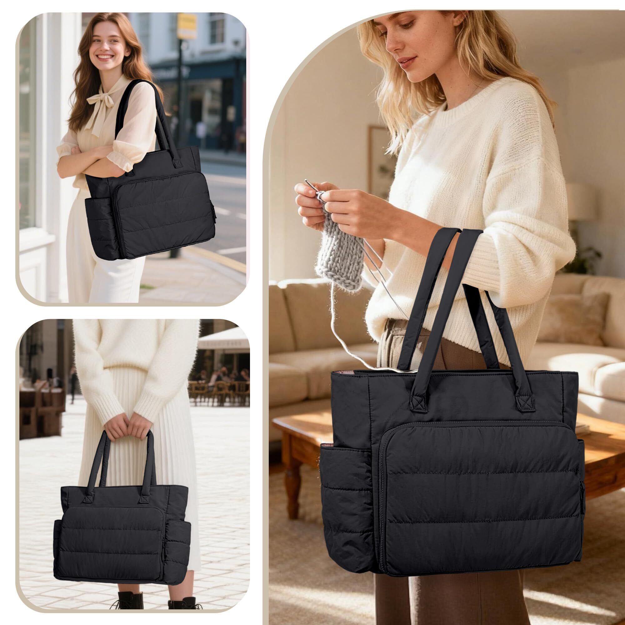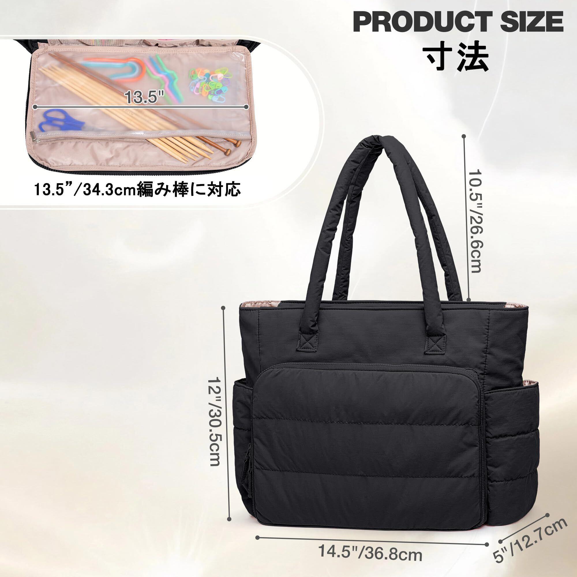 【新着商品】Teamoy 編み物用トートバッグ 毛糸収納バッグ 軽量 毛糸 編み針 編み物用品 未完成品 収納 持ち運び 便利 プレゼント ブラック