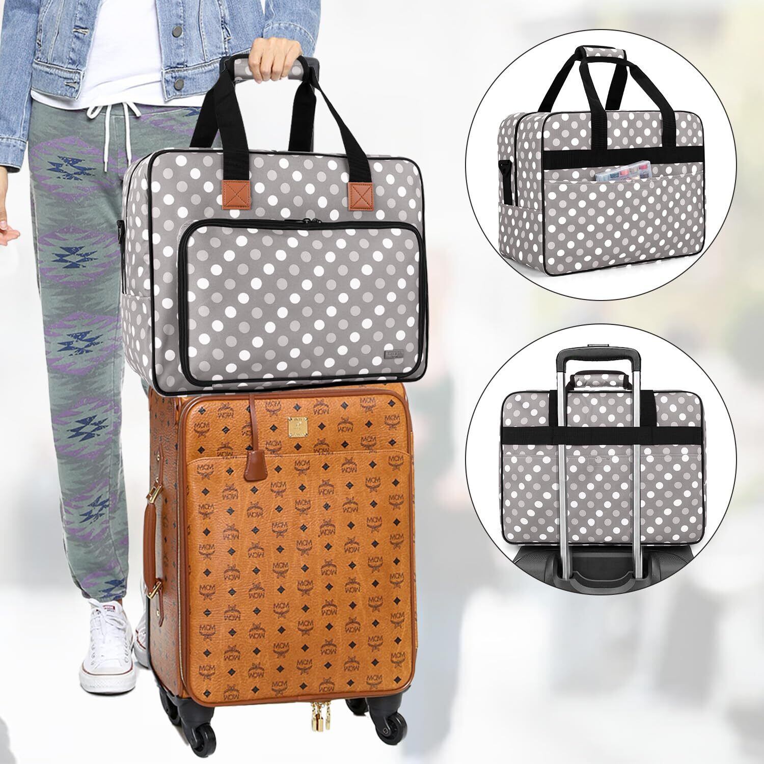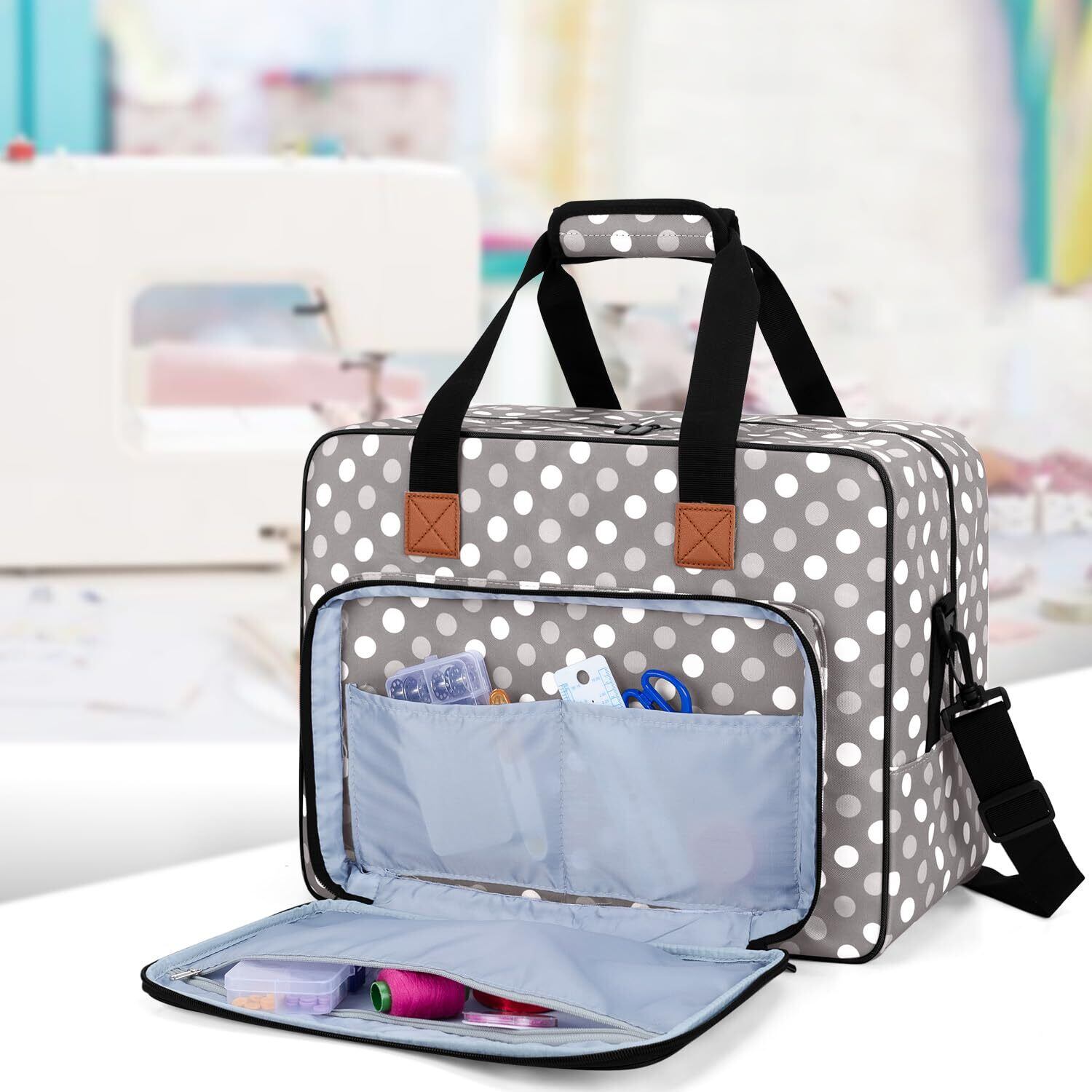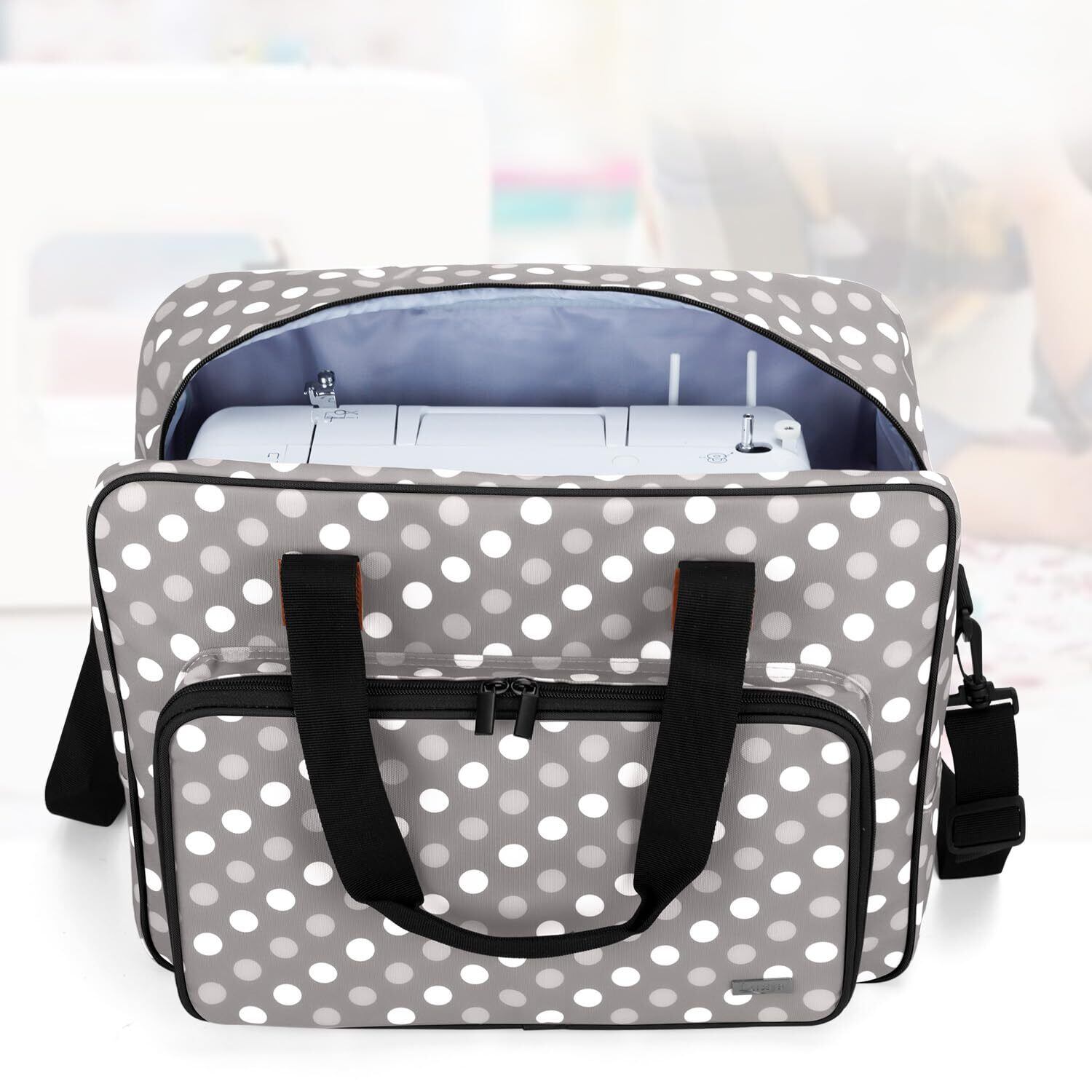 Luxja ミシン用トートバッグ 裁縫アクセサリ収納可能 クッション性 ポータブル グレードット