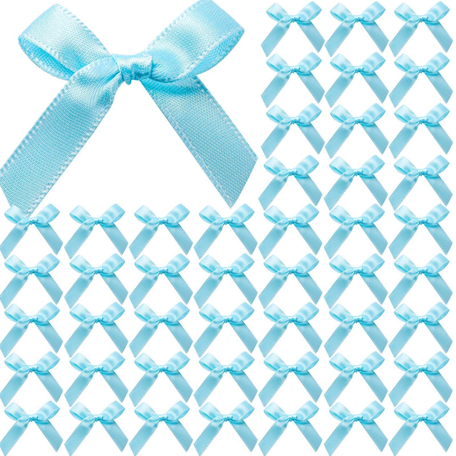 【在庫セール】50個のミニブルーボウ ライトブルーサテンリボンボウ クラフト用小さなボウ ベビーシャワー用超小ボウ パーティー装飾用 バルーンアクセサリー ギフトボックス包装用