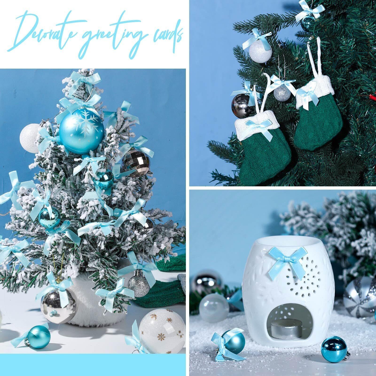 50個のミニブルーボウ ライトブルーサテンリボンボウ クラフト用小さなボウ ベビーシャワー用超小ボウ パーティー装飾用 バルーンアクセサリー ギフトボックス包装用