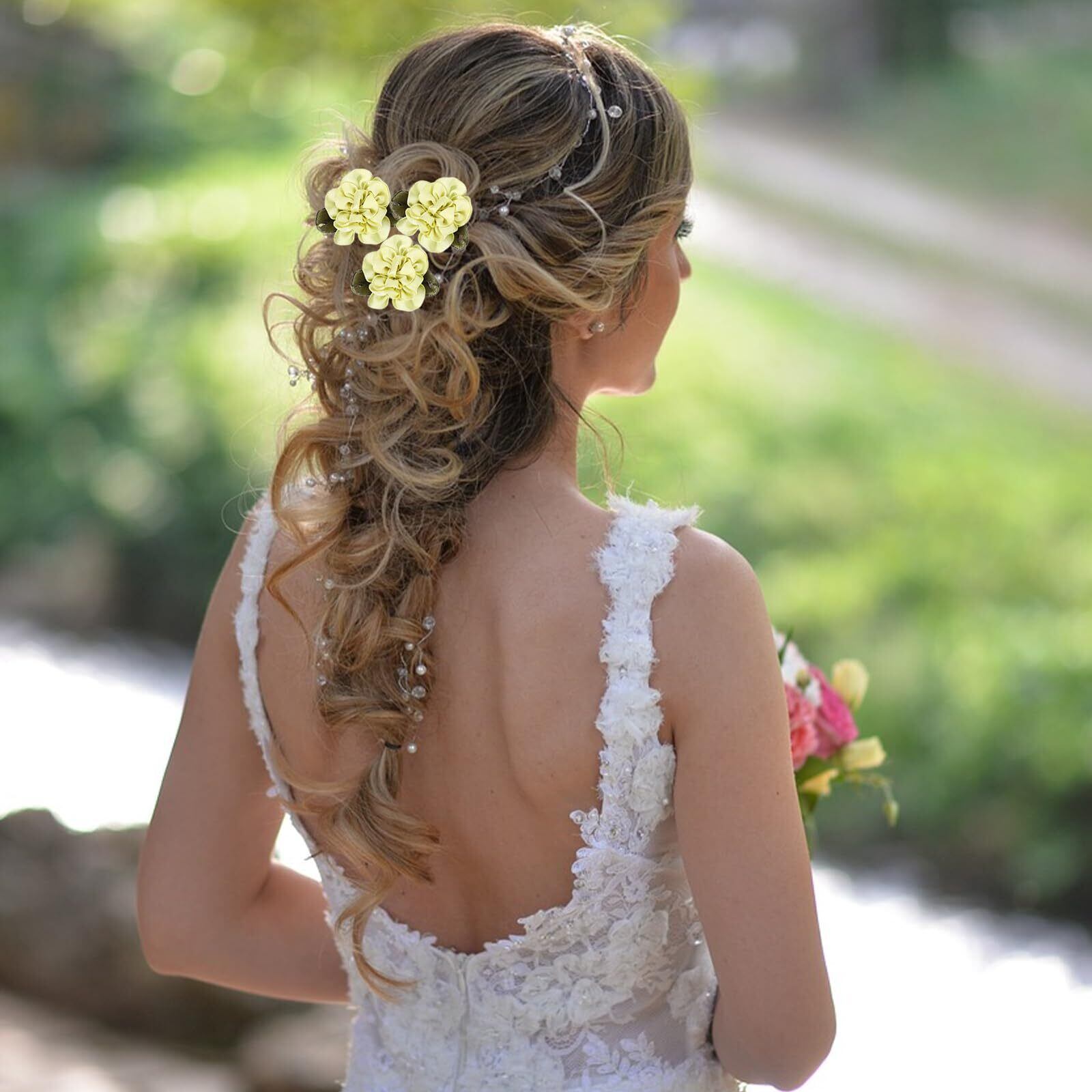 用途: ミニリボンフラワーは、DIYクラフトに適しており、パーティーデコレーション、ヘアバンド、ギフト、ヘアボウ、イヤリング、ブローチ、スクラ ップブック、壁などのアクセサリーに使えます。また、ウェディングではリストフラワーやコサージュ、キャンディギフトボックス、招待状、その他のデコレーションにも最適です。衣服に縫い付けて、繊細なタッチを加えることもできます。