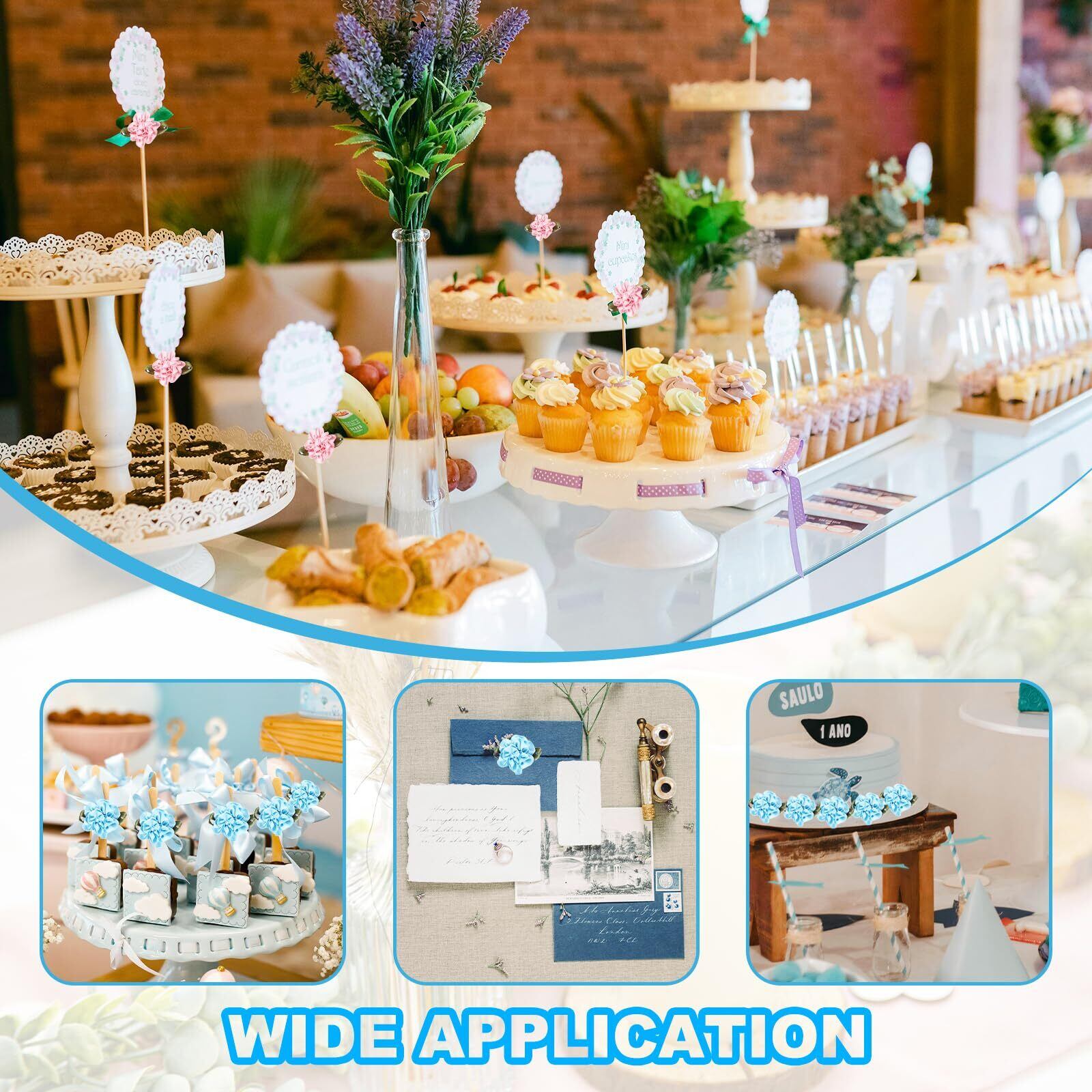 ミニリボンフラワーは、DIYクラフトに適しており、パーティーデコレーション、ヘアバンド、ギフト、ヘアボウ、イヤリング、ブローチ、スクラ ップブック、壁などのアクセサリーに使えます。また、ウェディングではリストフラワーやコサージュ、キャンディギフトボックス、招待状、その他のデコレーションにも最適です。衣服に縫い付けて、繊細なタッチを加えることもできます。