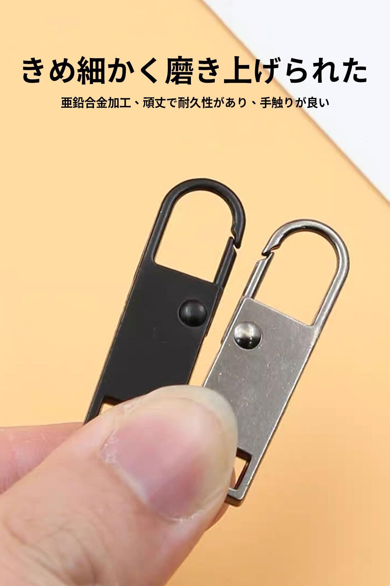 【高品質な素材】 ファスナーの引手部分は亜鉛合金材でできており、酸化しにくく、耐摩耗性、耐腐食性と耐久性に優れた素材です。耐久性がありますので、折れたり色褪せたりしにくいのです。強度が高く、丈夫で耐用的で、壊れにくいため、長期間ご使用いただだけます。高品質の素材で作られたから、触り心地の良い質感に仕上げており、表面がつるっとして光沢感がよく、細かい仕上がり、高級感のある金属製ファスナー引き手パーツです。