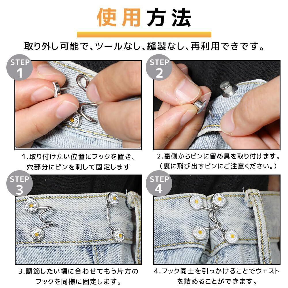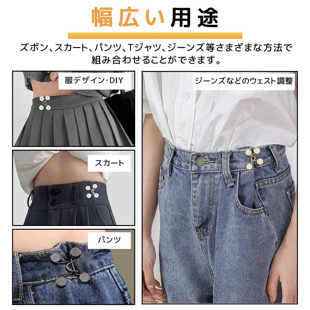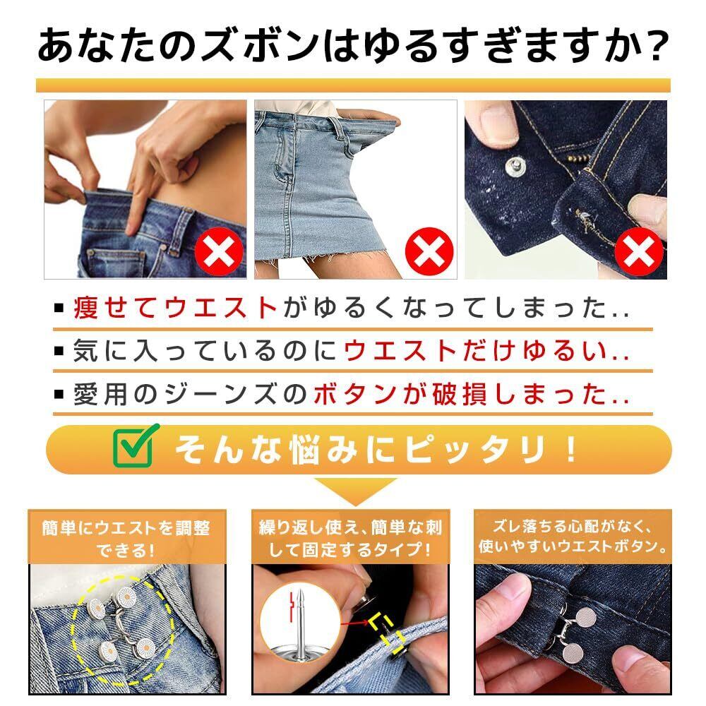 【ジーンズ 調整ボタン】内容量:ジーンズボタン27mm3個セット+収納ケース1個。ウエストバックルのセットは、2つのフックと4つのボタンで構成されています。お手持ちのパンツやスカートに取り付けて簡単にウエストを調整できる便利アイテムです。
