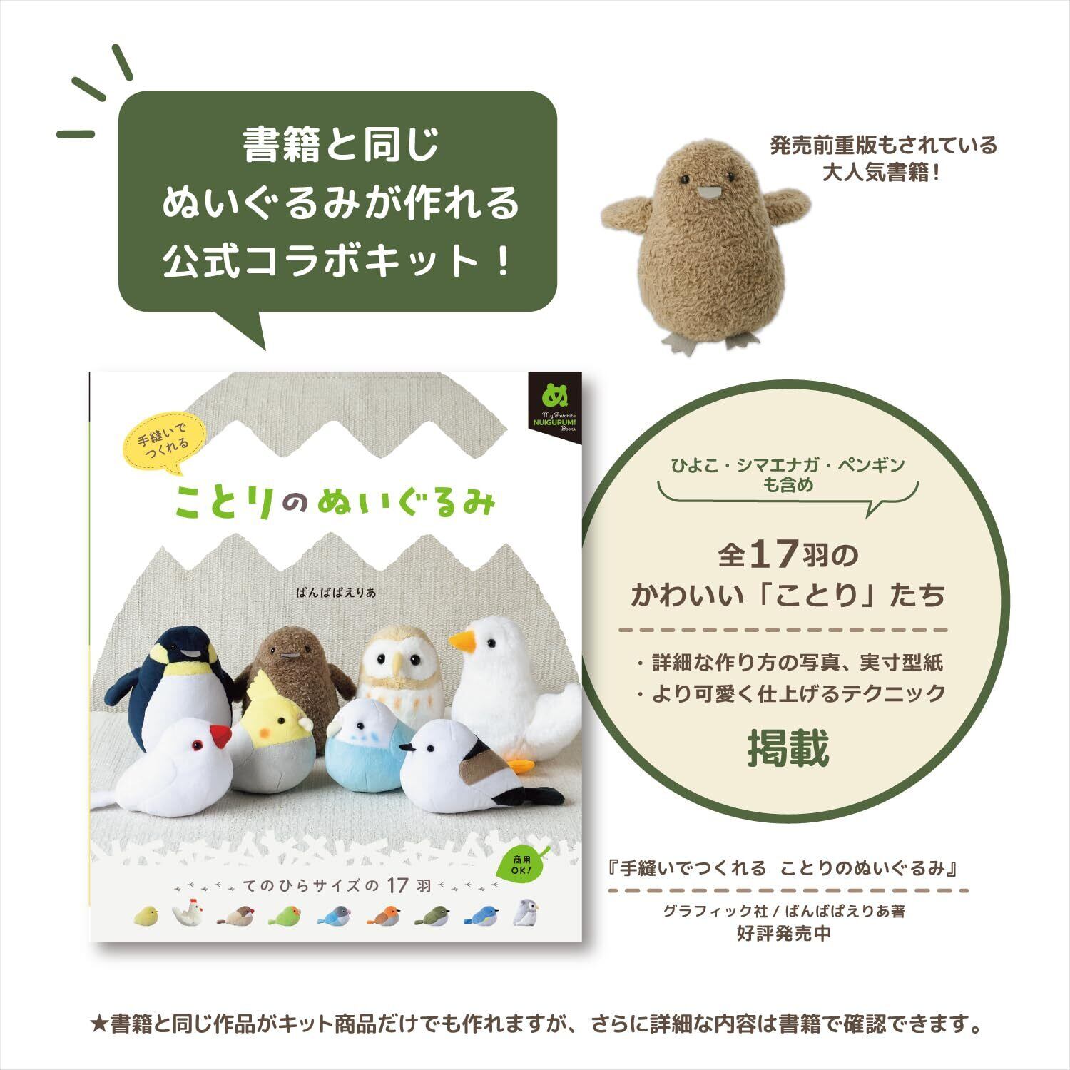 人気ぬいぐるみ作家「ばんばぱえりあ」さんの書籍『手縫いでつくれる ことりのぬいぐるみ』(グラフィック社)と公式コラボした人気のあるかわいい「ことり」のぬいぐるみのキットです。裁断済みの生地が入っているので手軽に手作りできる、ぬいぐるみ作り初心者にも優しい商品です。