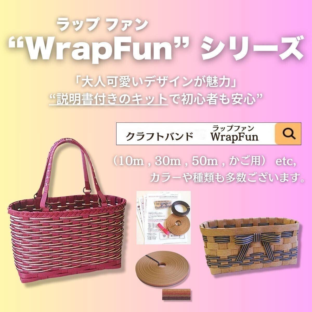 【2022最新】手芸用ホビーテープ クラフトバンド 紙バンド キット 12本幅 クラフトテープ ペーパークラフトバンド 手作りキット WrapFun ラップファン (カラフル)
