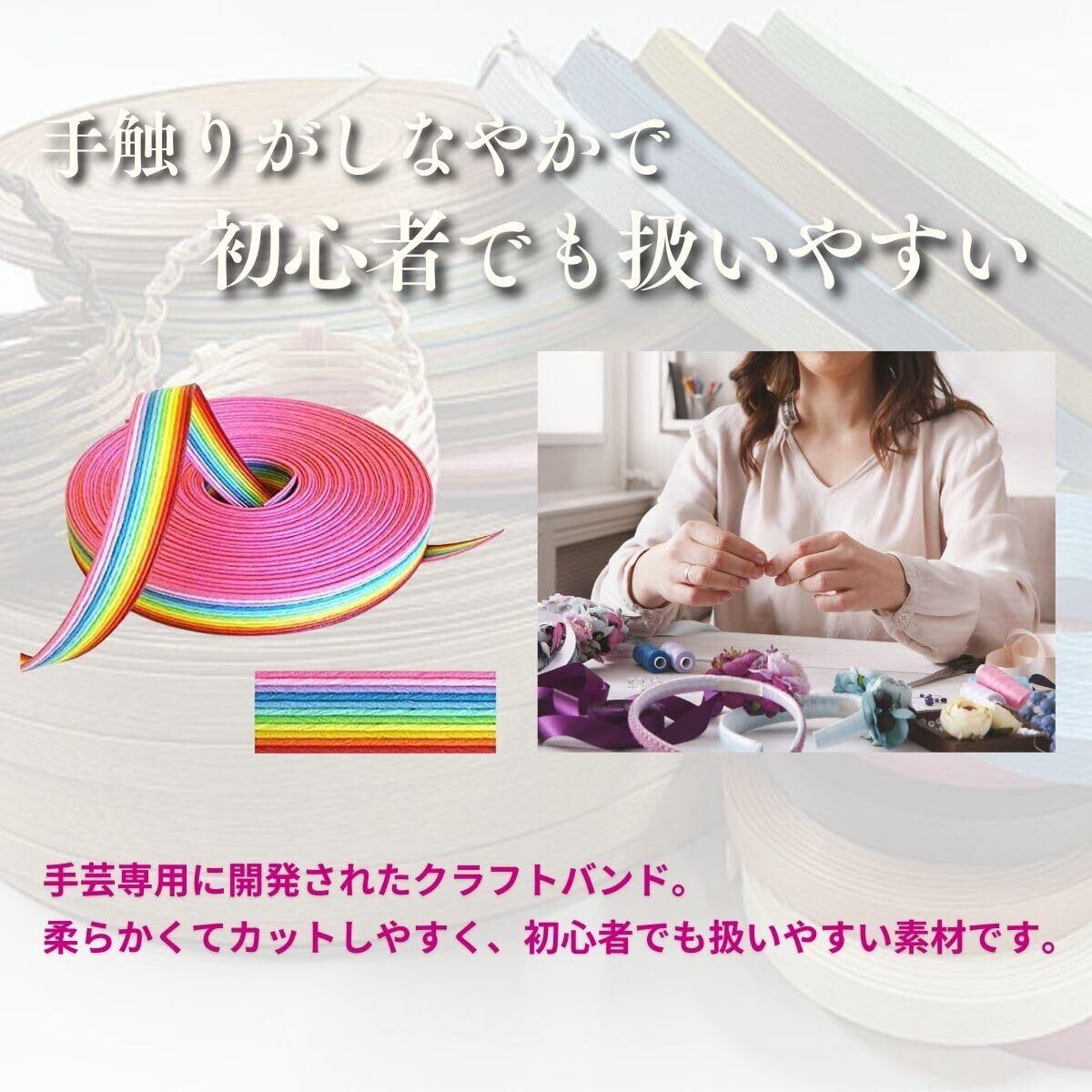 手芸用に開発された、バンドクラフトテープのため、 手触りがしなやかで柔軟性に富み、使い勝手がいいことで多くの方からご愛顧いただいています。