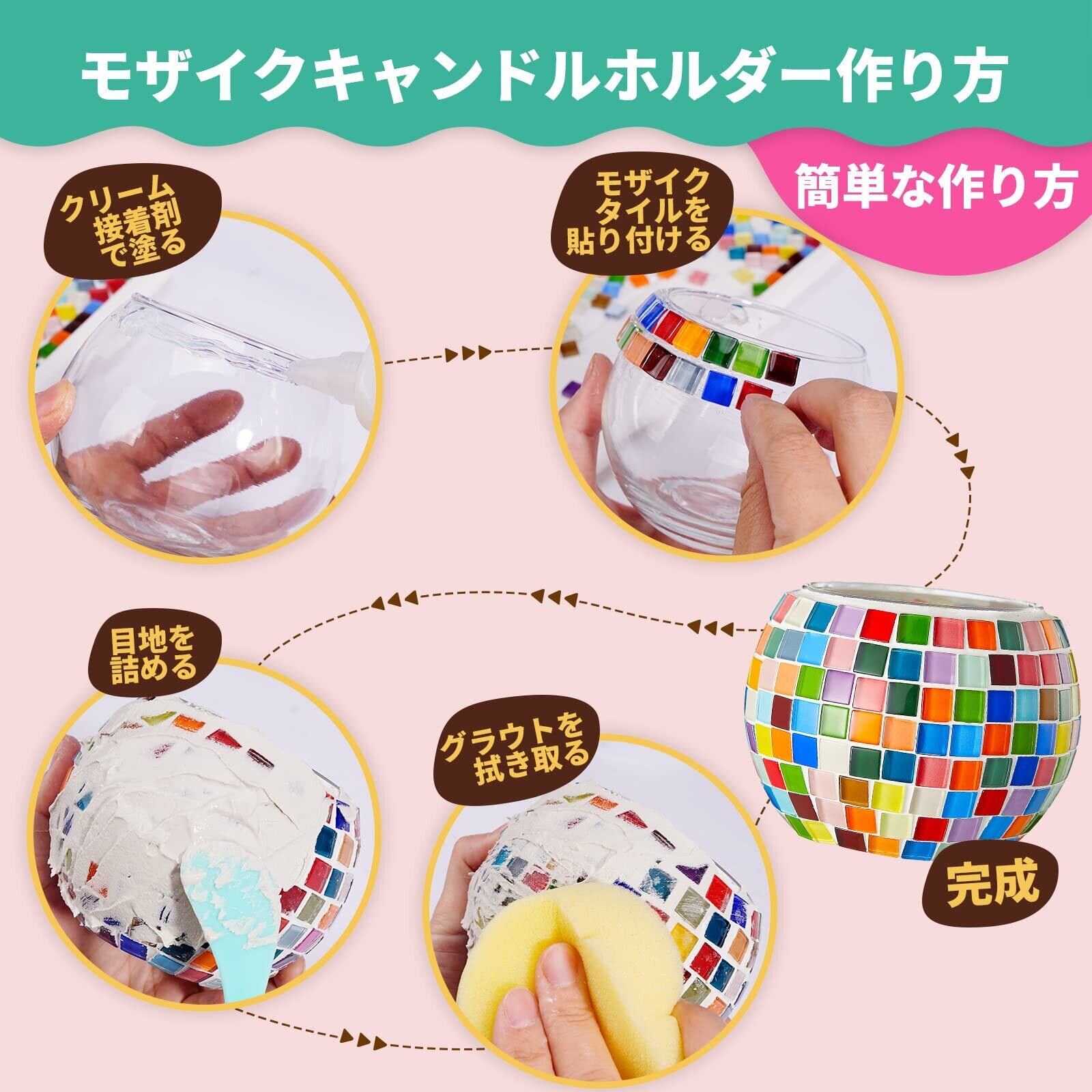 モザイクキャンドルホルダー 手作りキット モザイクタイル 工作キット ステンドグラス 手芸キット タイルクラフト 子供 大人向け 小学生 女の子 男の子 人気 プレゼント 夏休み 自由研究 工作 ギフト