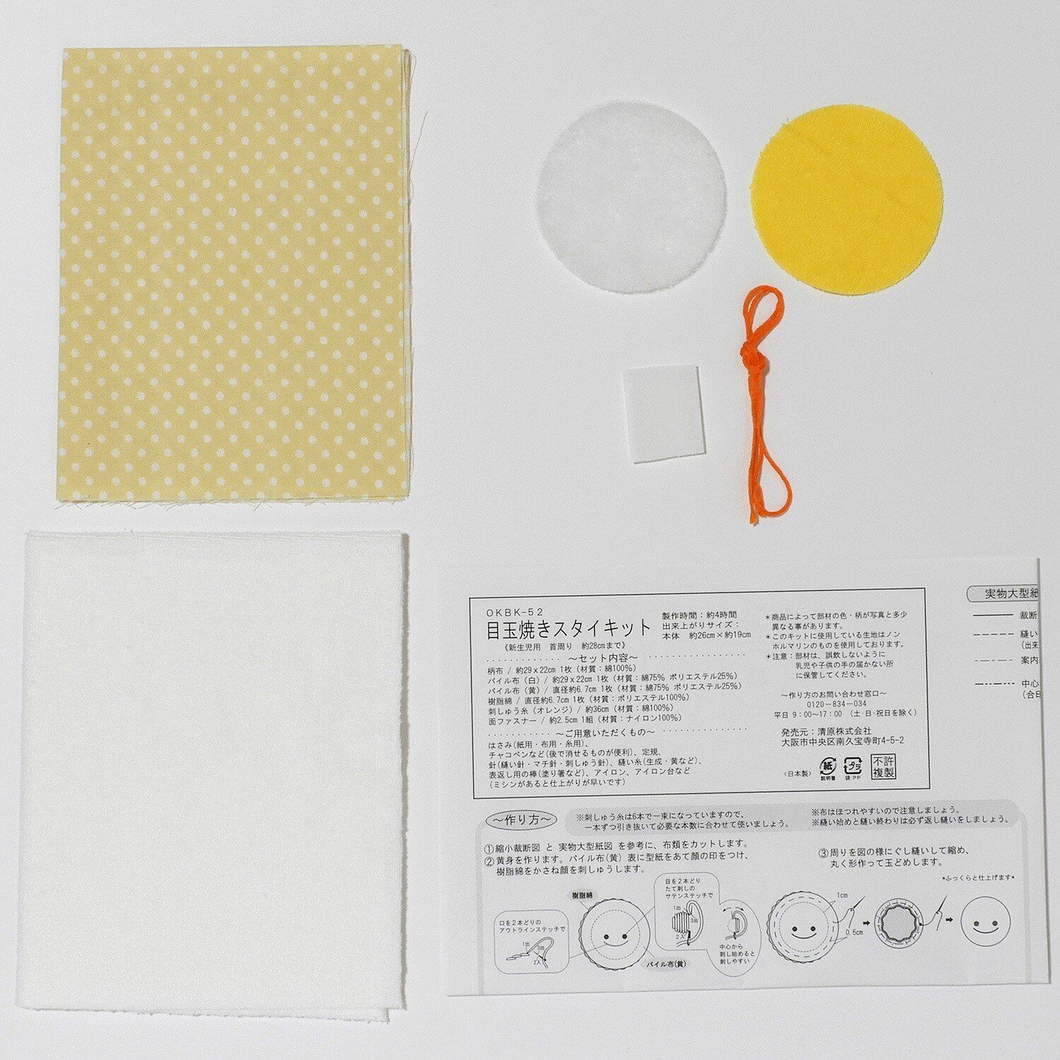 ・キット使用の生地はノンホルマリンのものを使用しておりますので、安心してお使いください。