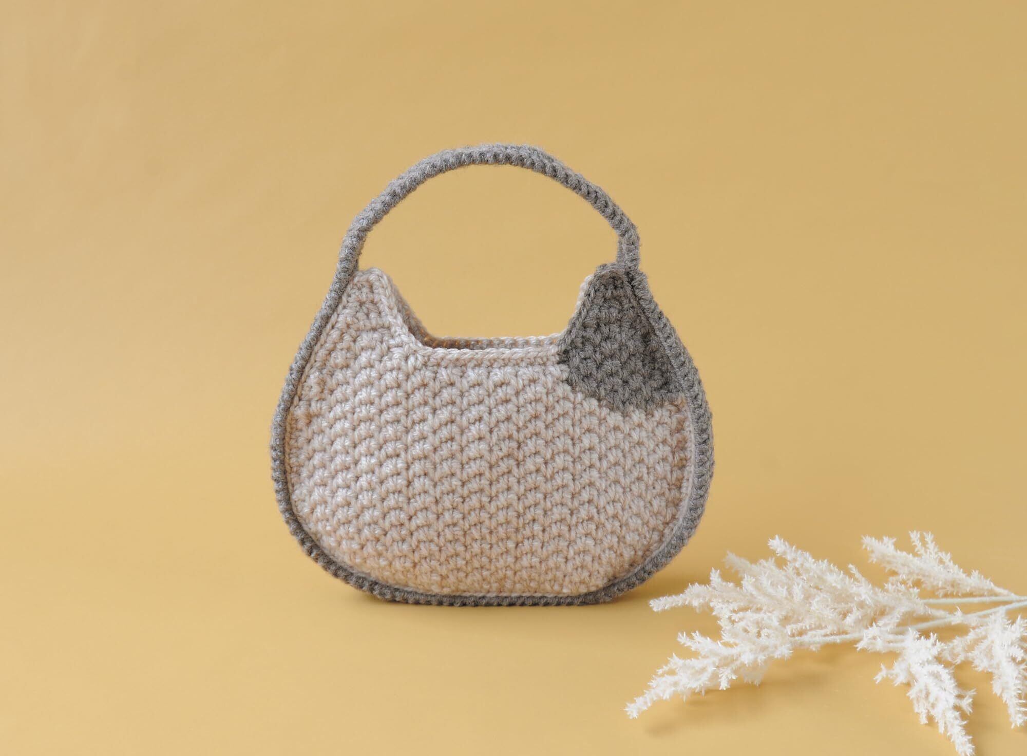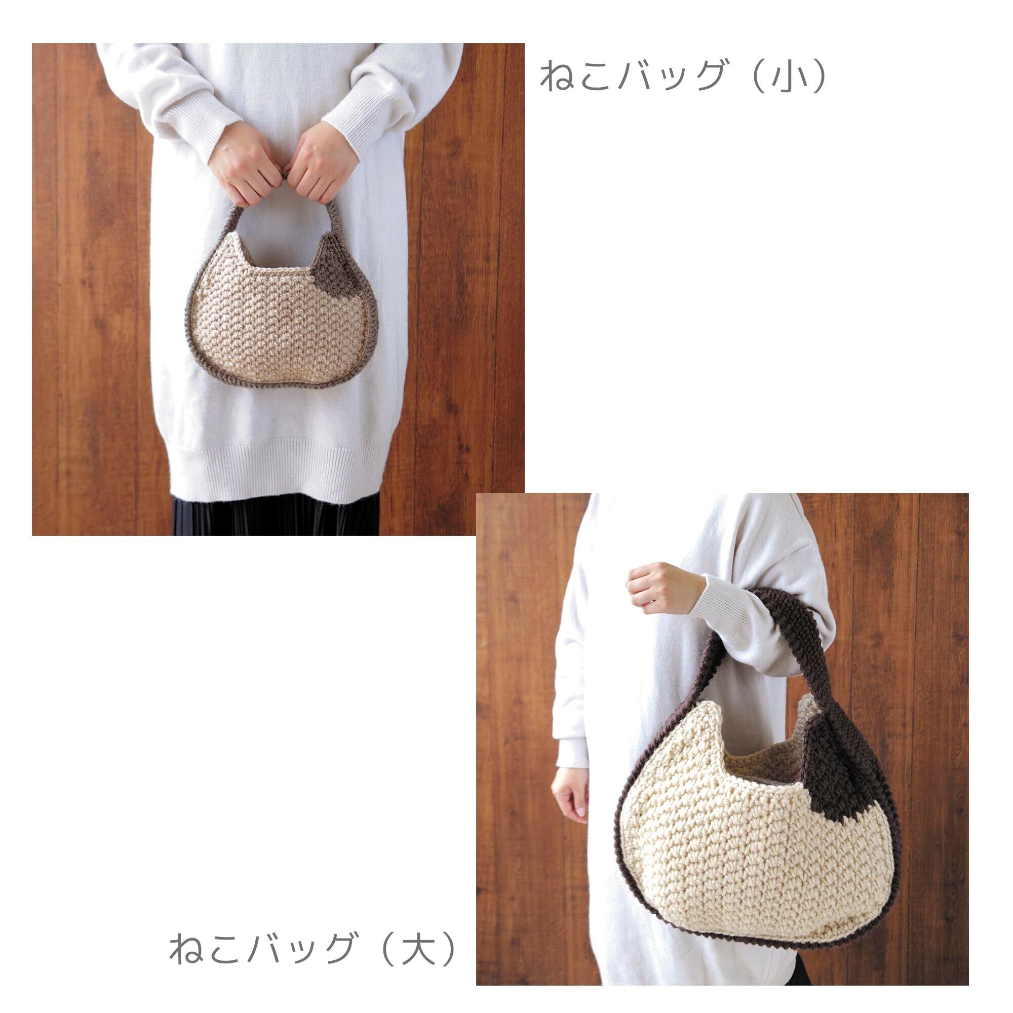 【2022最新】ハマナカ あみものキット (ハマナカ ボニー 使用) ネコバッグ 小 COL. 614・615使用 (サイズ 約 幅27cm×深さ17cm×マチ4cm) H320-003-055