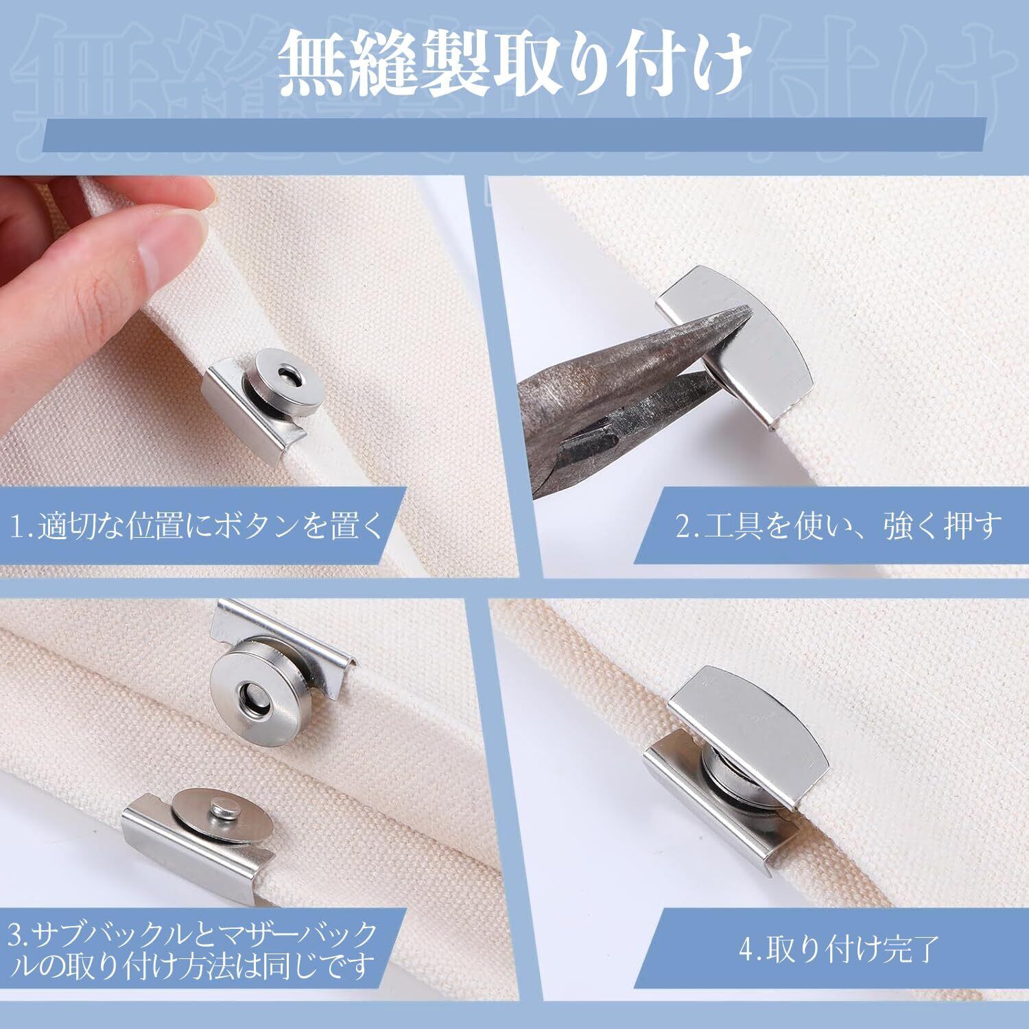 【特価商品】マグネットボタン はさんでつけるマグネットボタン 2ペアセット トートバッグ マグネット 後付け 取り付け簡単 再利用可能 (銀色)