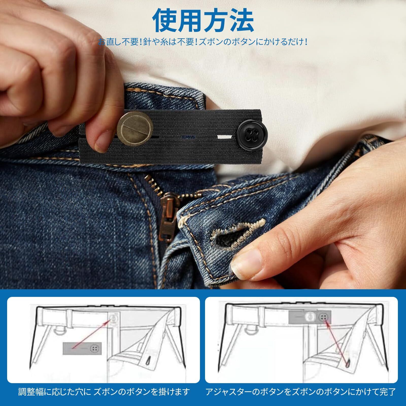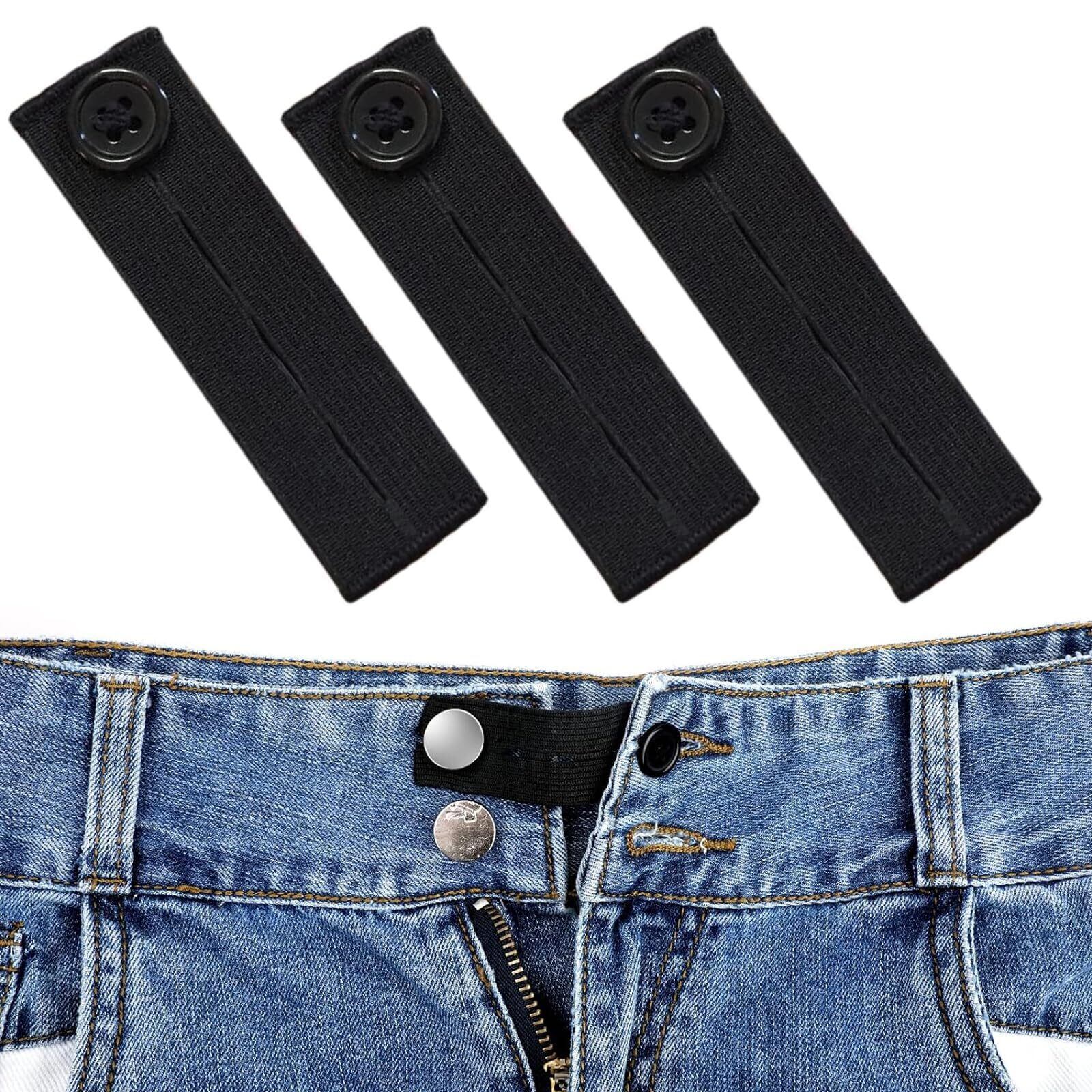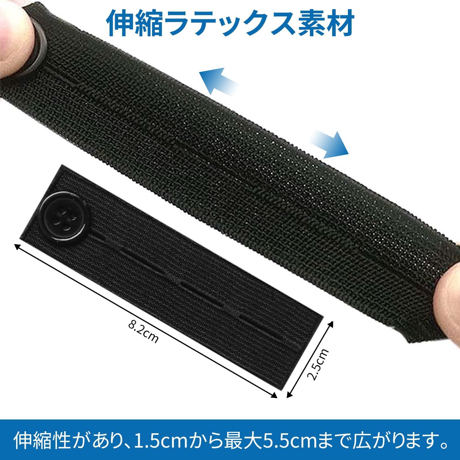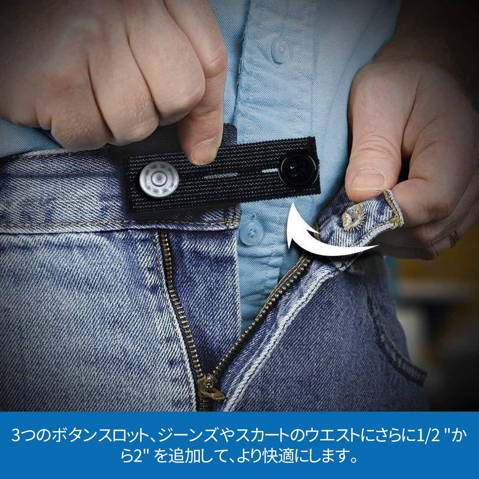 ウエスト 調整 ウエスト延長バンド サイズ調整 3段階で調節 デニム ウエスト伸ばす 留め具 ホックボタン エラスティック 弾力性ボタン 裁縫不要 スカート ブラック 8.2cm*2.5cm