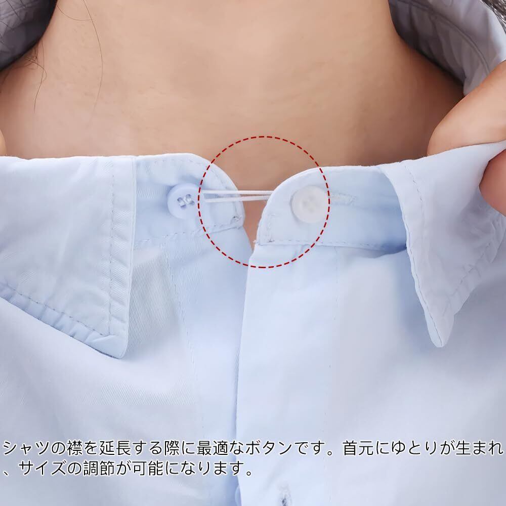 多目的:シャツの襟を延長する際に最適なボタンです。首元にゆとりが生まれ、サイズの調節が可能になります。袖口にもご使用いただけます。