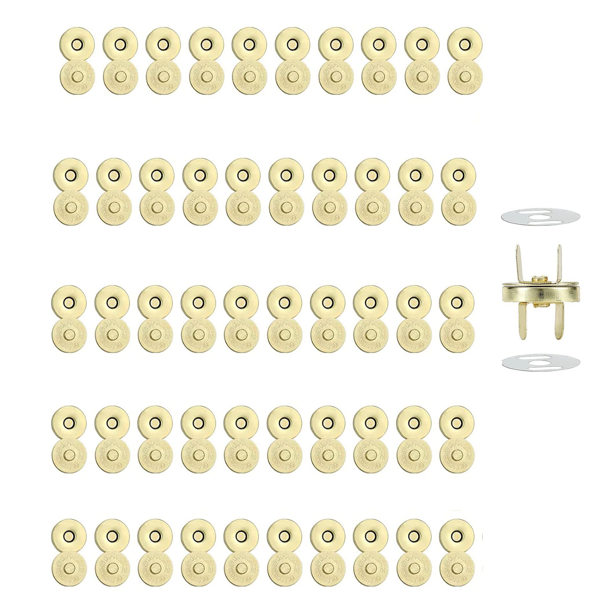 【新着商品】DERAYEE 磁気ボタン 差込式 留め具 DIY 手作り 50組 (ゴールド, 14mm)