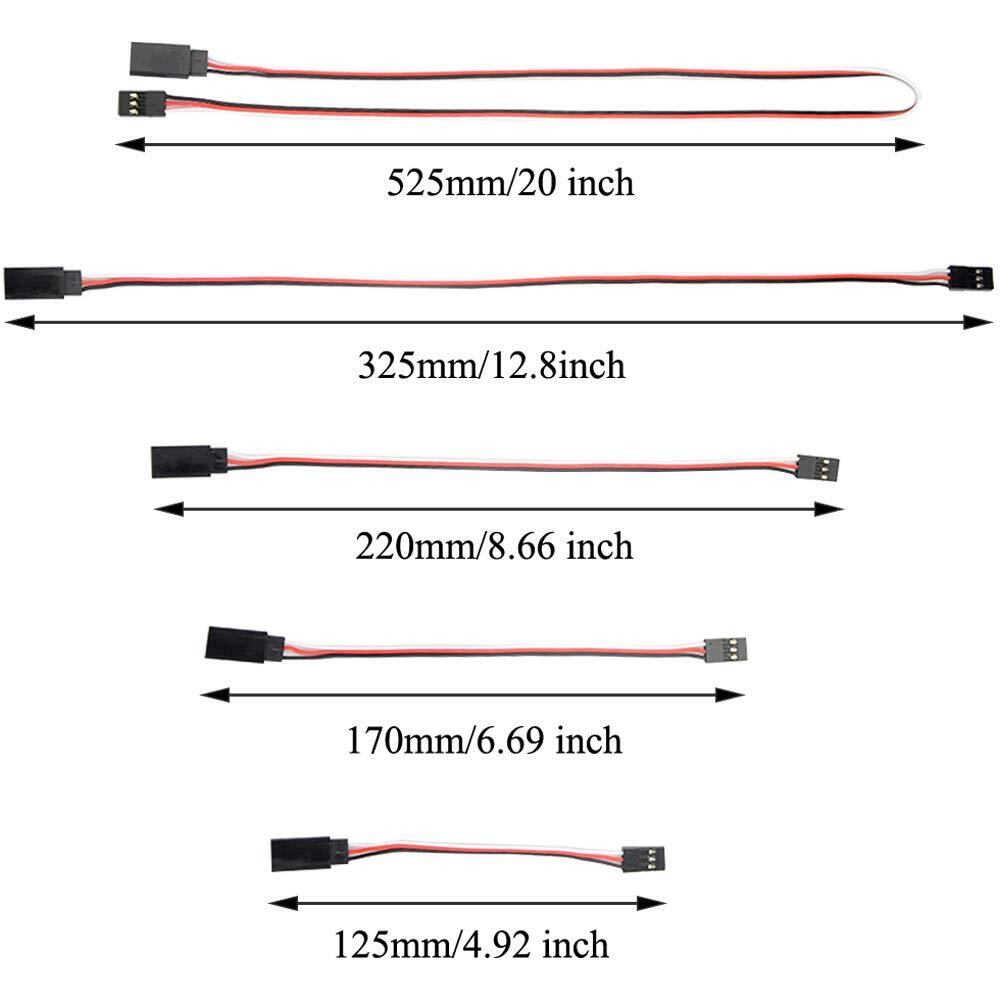 125mm/4.92インチ、170mm/6.69インチ、220mm/8.66インチ、325mm/12.8インチ、525mm/20インチの5種類の長さのオス-メスサーボケーブルが付属しており、様々なニーズに対応できます。