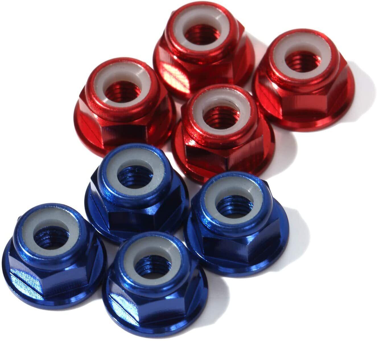 タミヤ10/1スケール対応 アルミ製軽量ホイールナット8個セット (ブルー4個?レッド4個)樹脂フランジ付き 軽量化 ドレスアップなどに M4サイズ皿付きナット