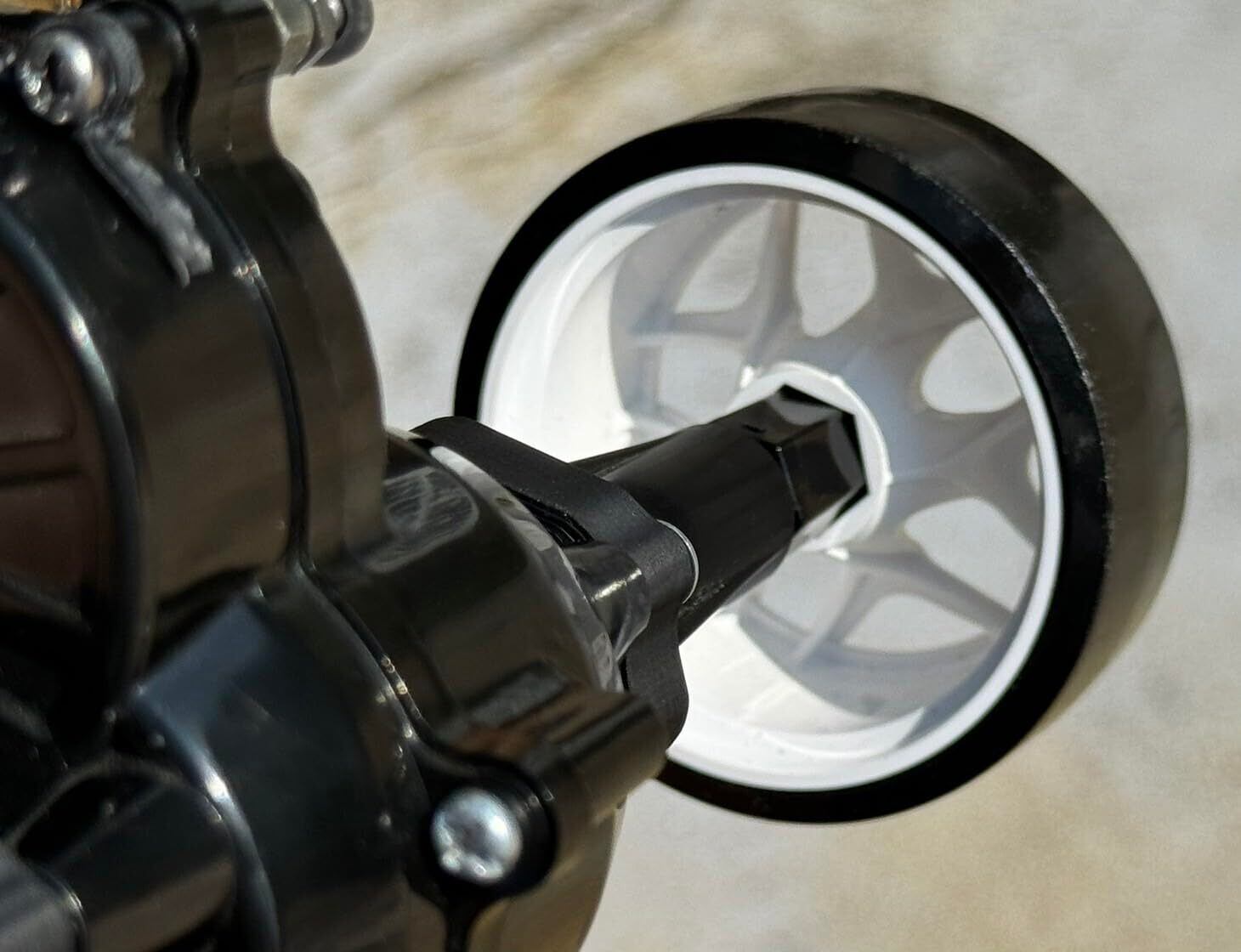 グラスホッパーは専用のホイールハブの為、汎用の六角ホイールが装着できませんでした。この17mm六角ホイールハブを使うことにより汎用のホイールが装着できるようになります。