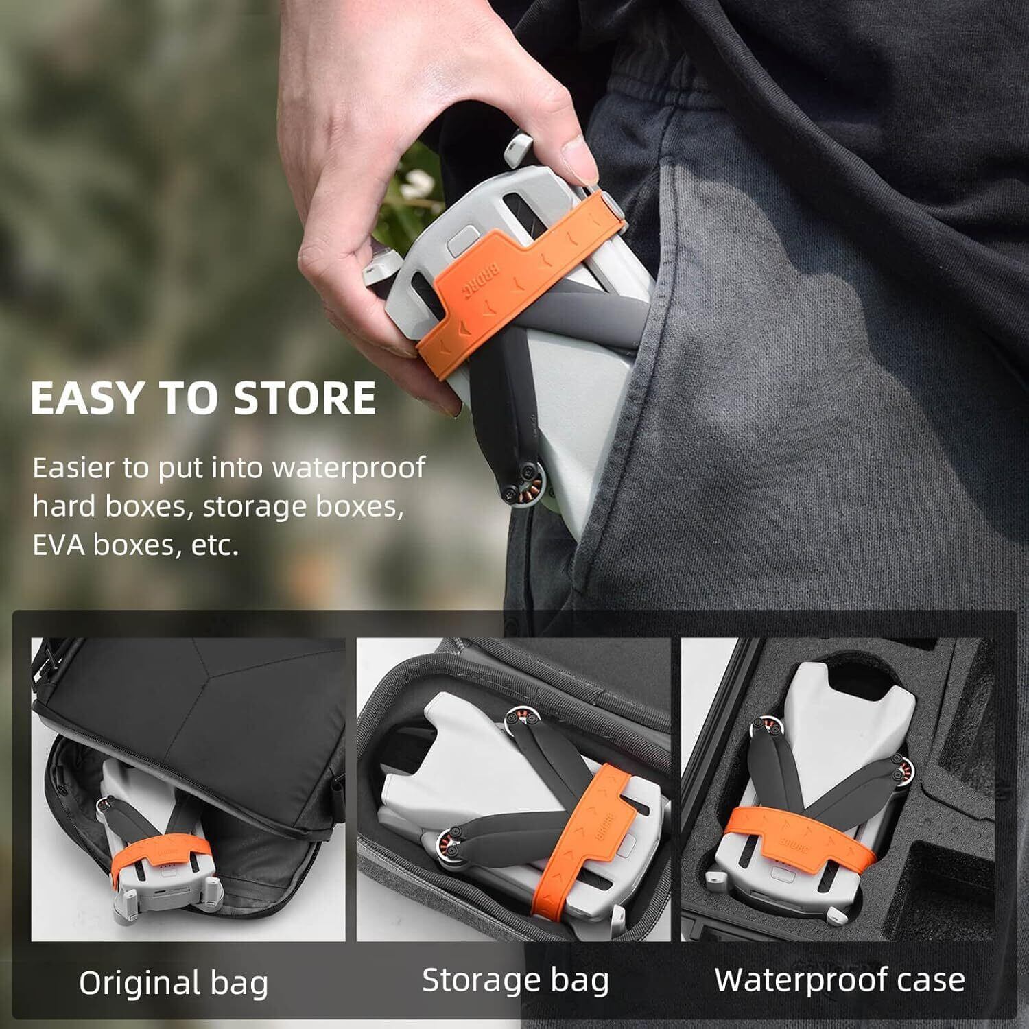 軽くて頑丈なABS素材と柔軟なシリコンゴム素材で作られており、輸送中や保管中にプロペラをしっかり固定できます。