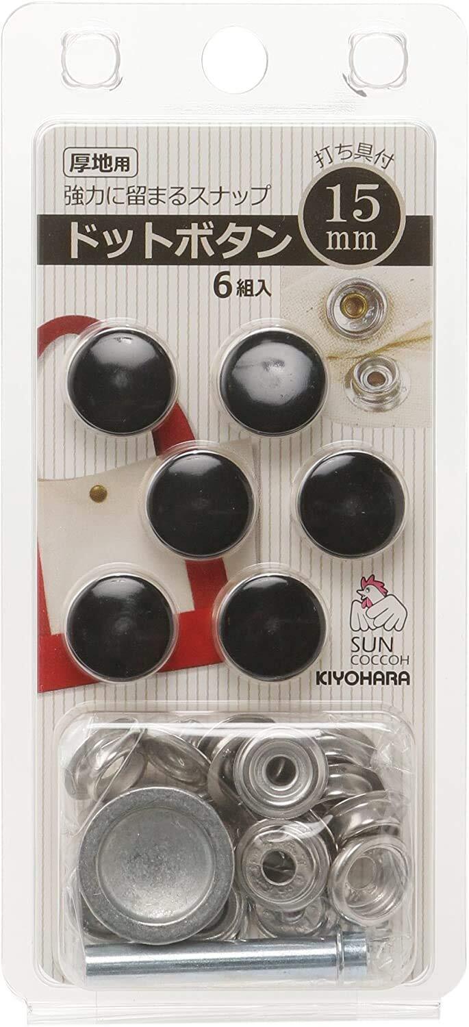【新春セール】清原 KIYOHARA サンコッコー ドットボタン 6組入 15mm ブラック 打ち具付き SUN18-54
