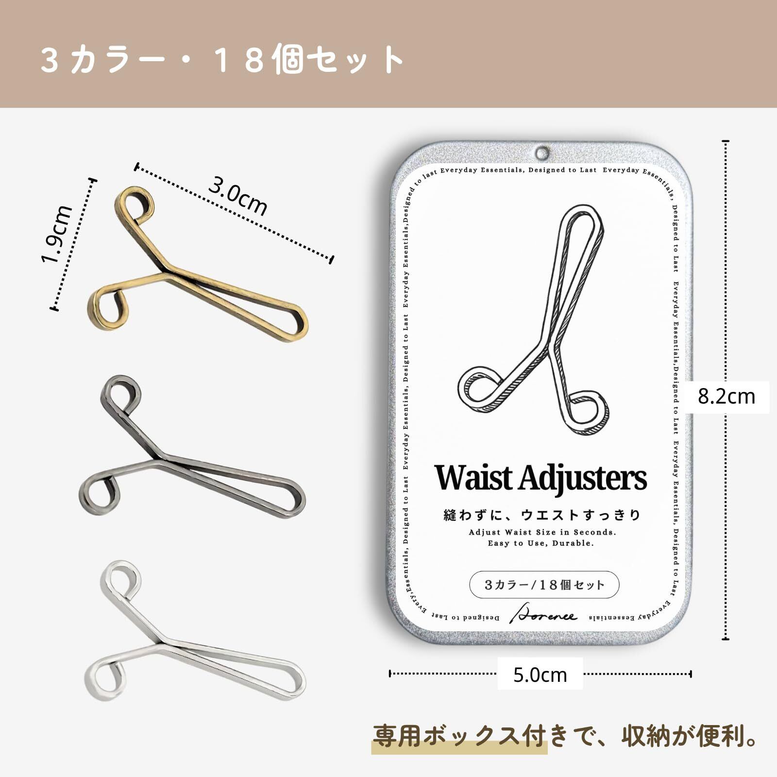 ウエスト調整 18個セット 3色入り ウエスト 裾アジャスター クリップ 裁縫不要 サイズ調整 取り外し簡単