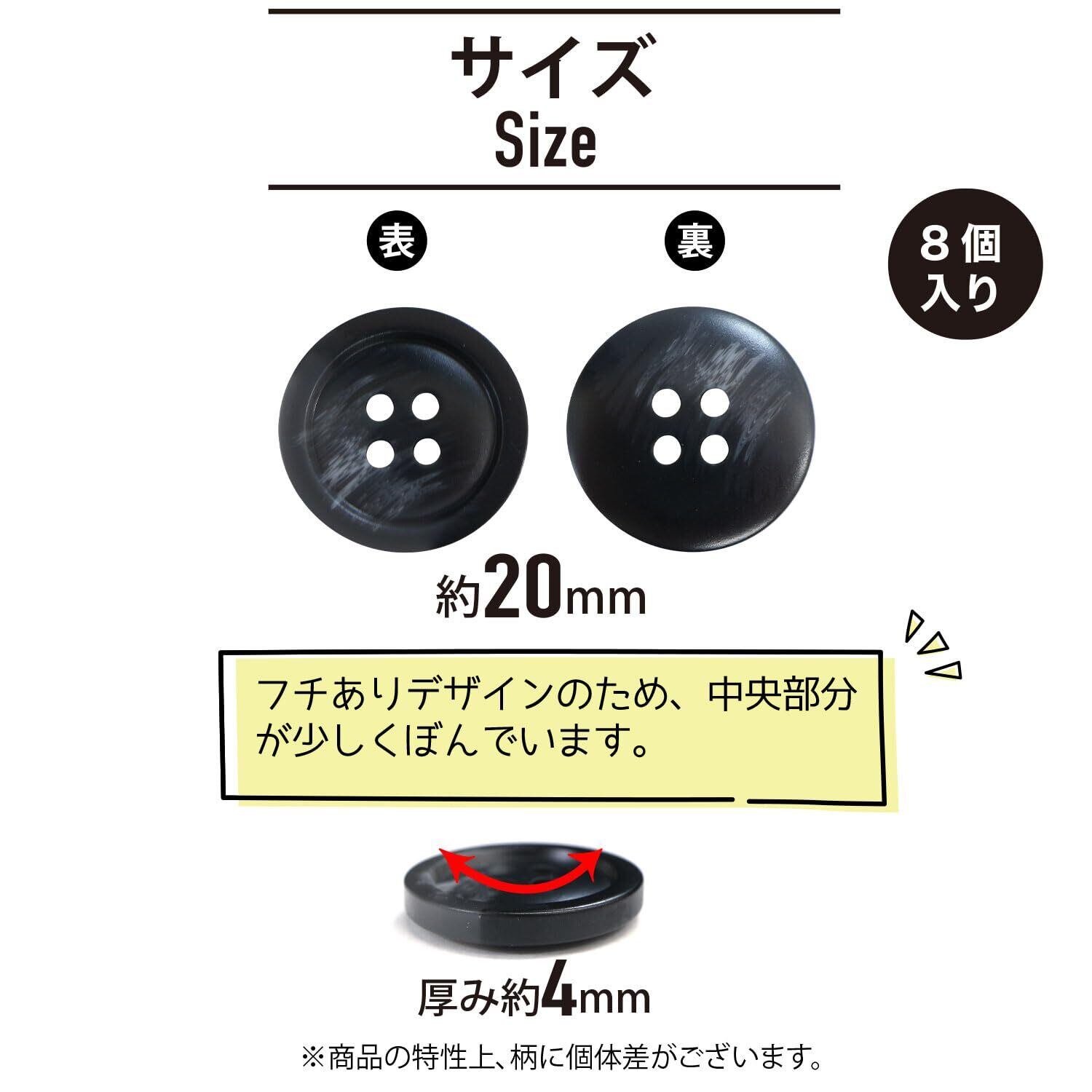 四つ穴ボタン マーブル模様 グラデーション黒 8個入り樹脂製 手芸 おしゃれ 可愛い きらきらぷんぷん丸 B-1196