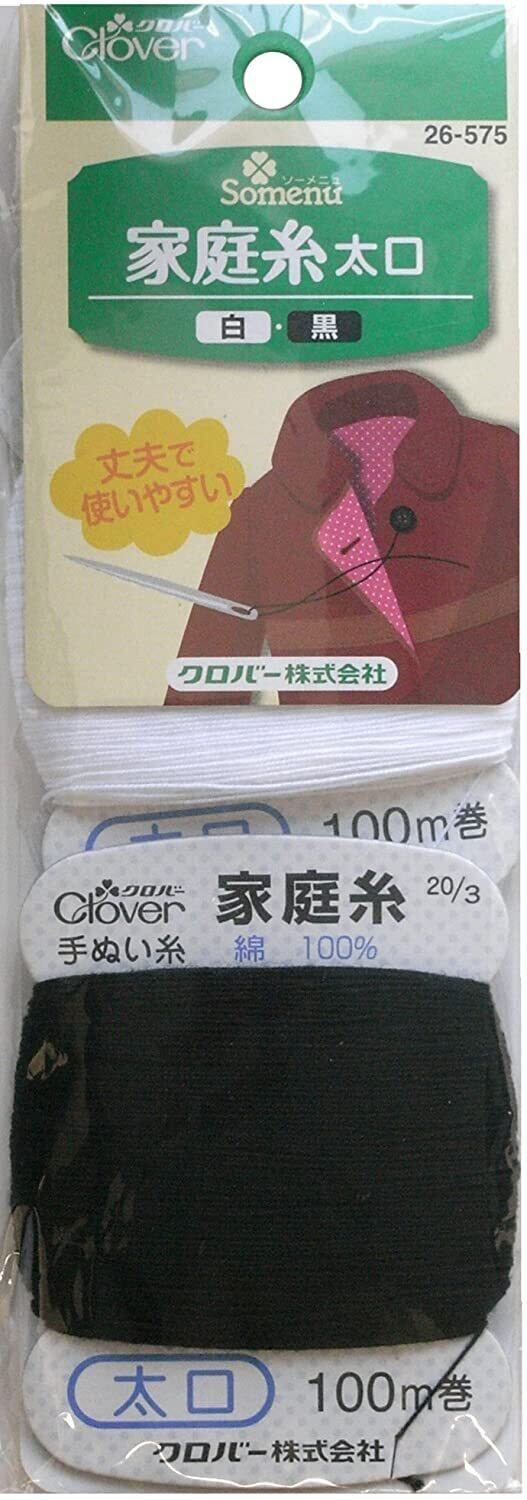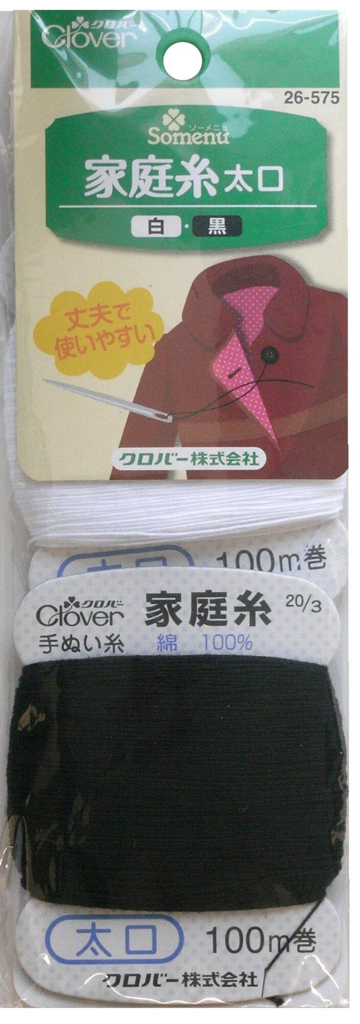 Clover 家庭糸 太口 100m巻 各1個入り 白・黒 26-575