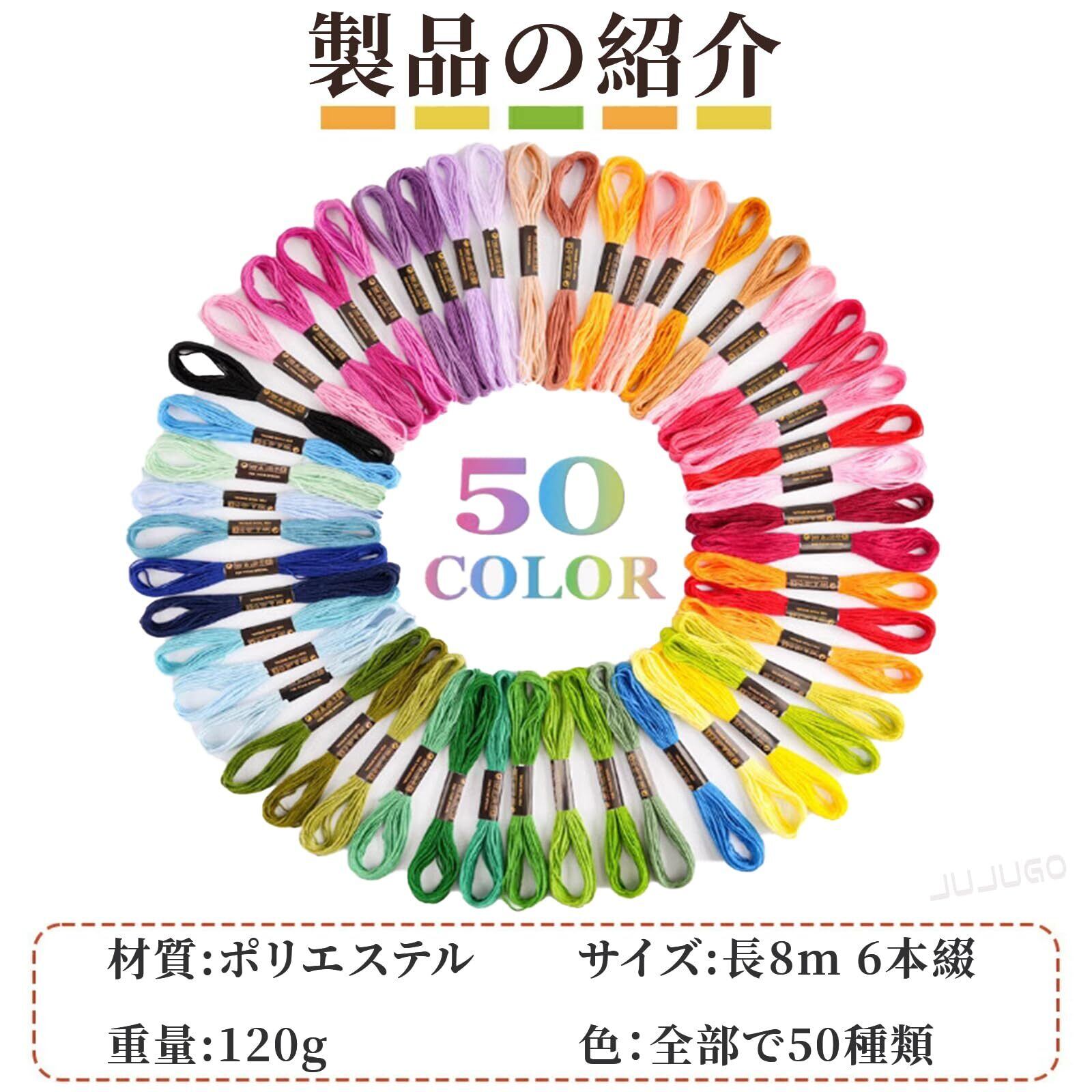 刺繍糸 50色セット (8m×6本綴) ほつれにくい 色落ち防止 多用途 手芸 刺繍 クロスステッチ ミサンガ DIY 手作り 家庭用縫い物 初心者 上級者対応