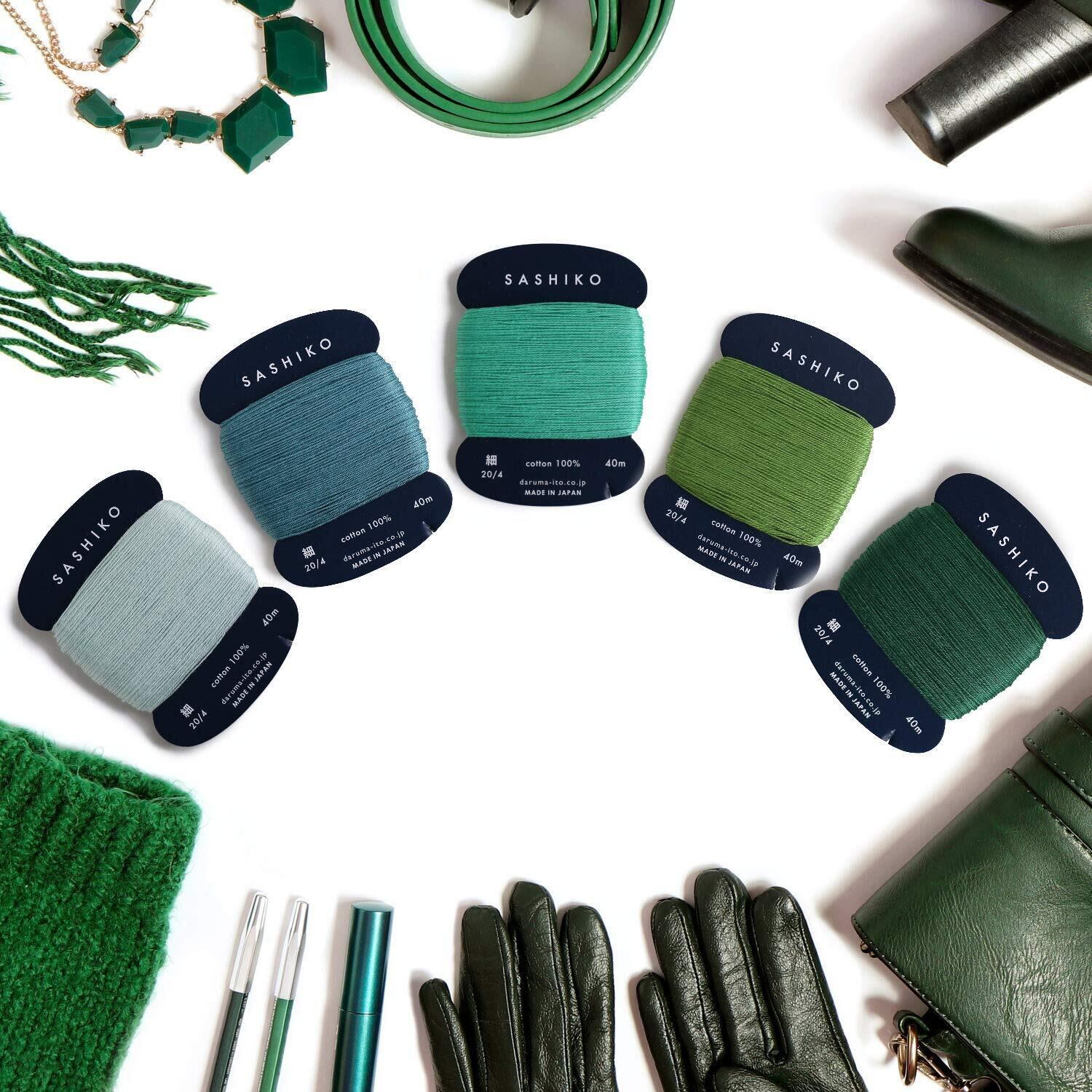 ダルマ 刺し子糸 綿100% カードタイプ (40m)×5色 刺し子マニュアル付き 裁縫&刺繍 バリューセット ギフトボックス入り (木漏れ日)
