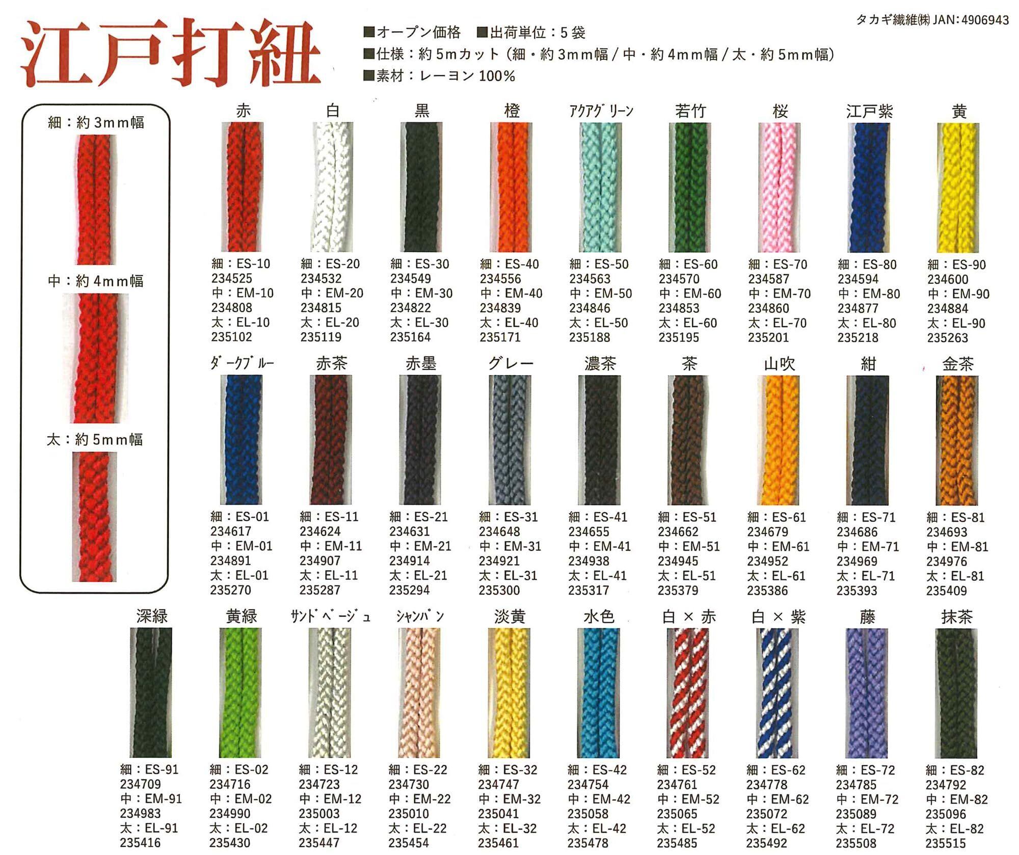タカギ繊維 Panami 江戸打紐 中 約4mm幅 約5mカット 赤 EM- 10 レーヨン100%